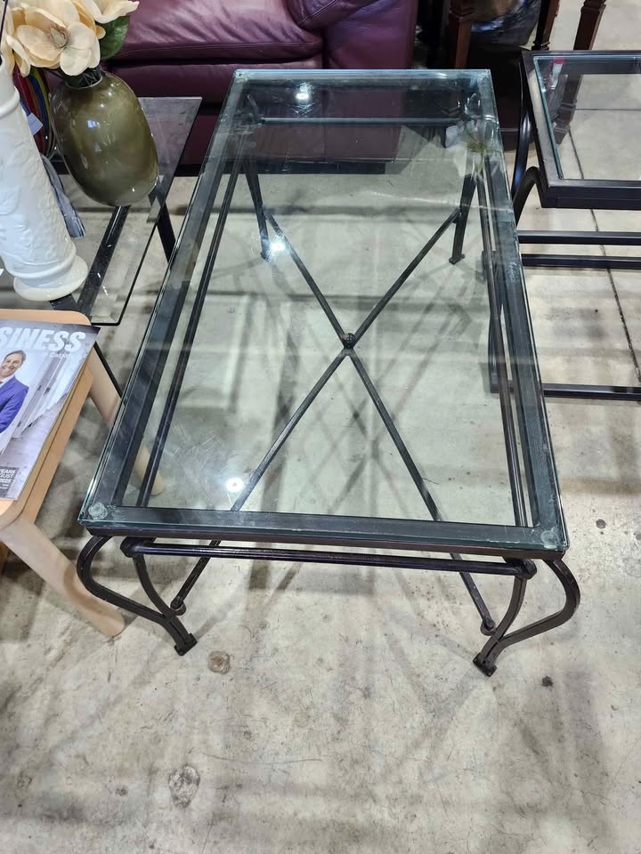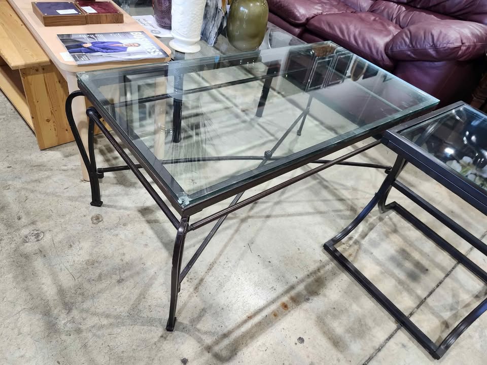 Enhance your living space with this elegant glass top table, perfect for adding a touch of modern sophistication to any room. The table has a sleek design with durable metal frames. Being previously owned, they do show some signs of wear, which only adds to their unique character. Key Features: - Elegant glass tops - Sturdy metal frames - Coffee side table - Coffee table Measures: 40" x 20" x 19" H - 6215 3rd St SE, Unit C11 - Rebound Centre Daily 10 AM – 5 PM Local pickup/Delivery available (for a fee depending on location/item). Feel free to drop us a message or visit us in store