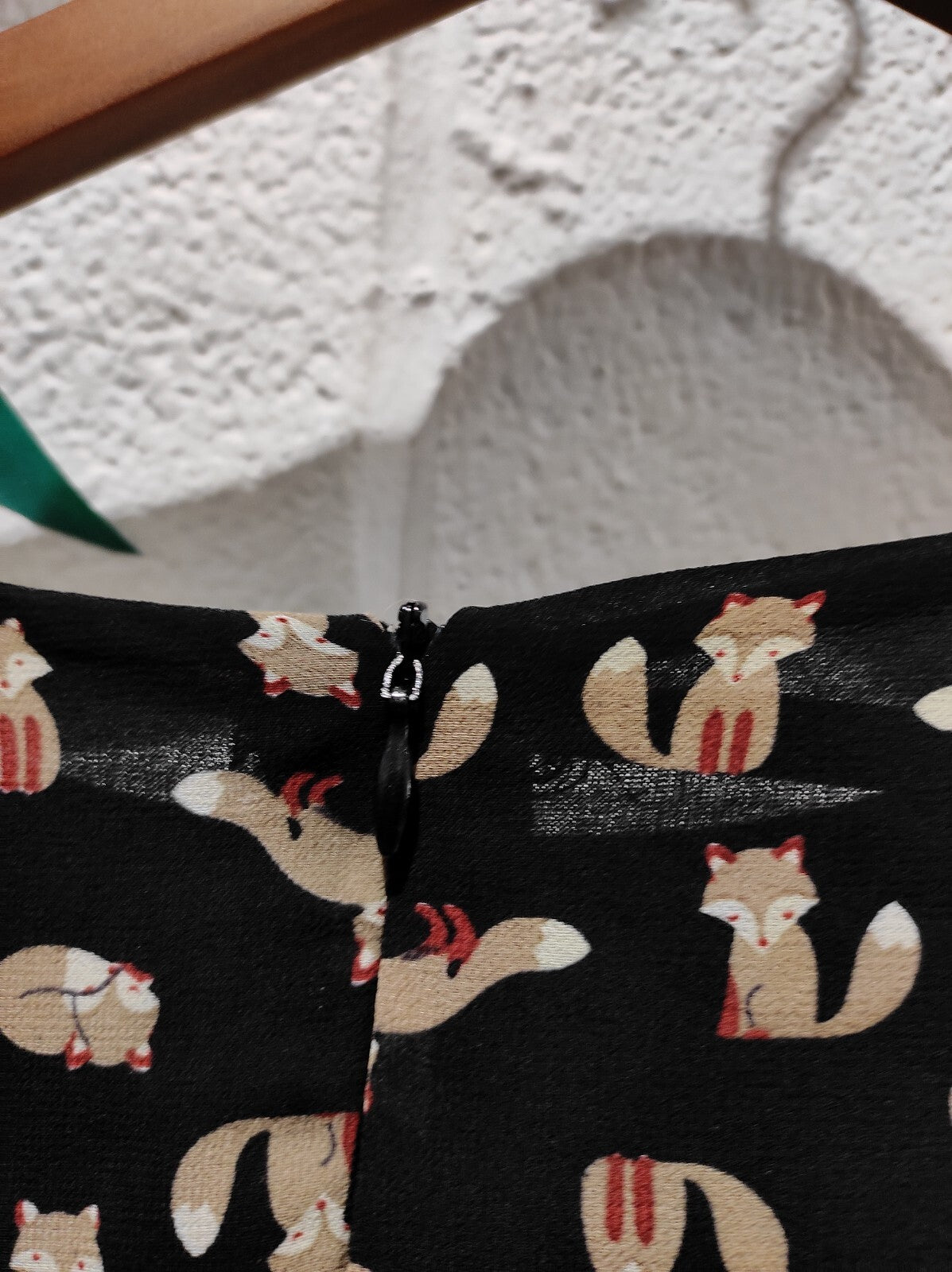 Gold Kid London Dress Women's Black Fox Print Size US- 6 Waist Lined