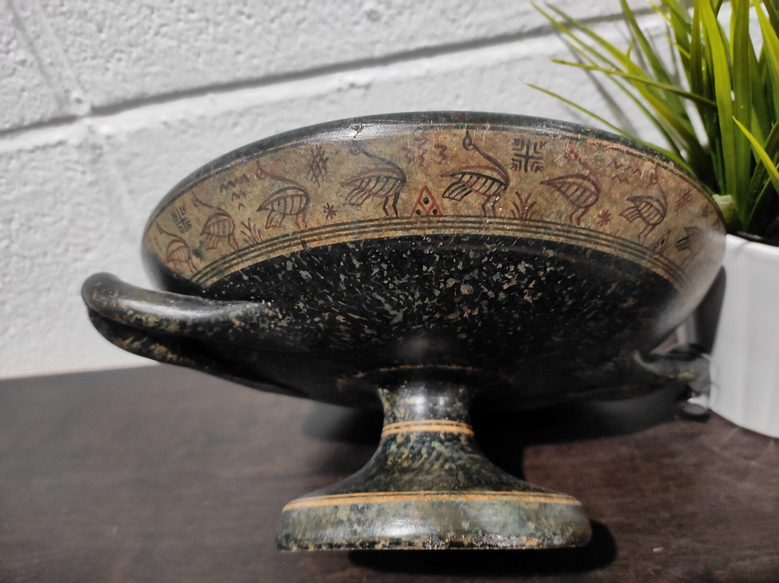This Greek Pottery Hand-Made Replica Kylix (800 BC) is a meticulously crafted reproduction of an ancient Greek drinking cup. Known for its elegant design, the kylix was commonly used during symposiums in ancient Greece. This high-quality replica captures the intricate details and craftsmanship of the original pieces, making it a perfect addition to any collection or as a decorative item for those interested in ancient Greek culture and history.