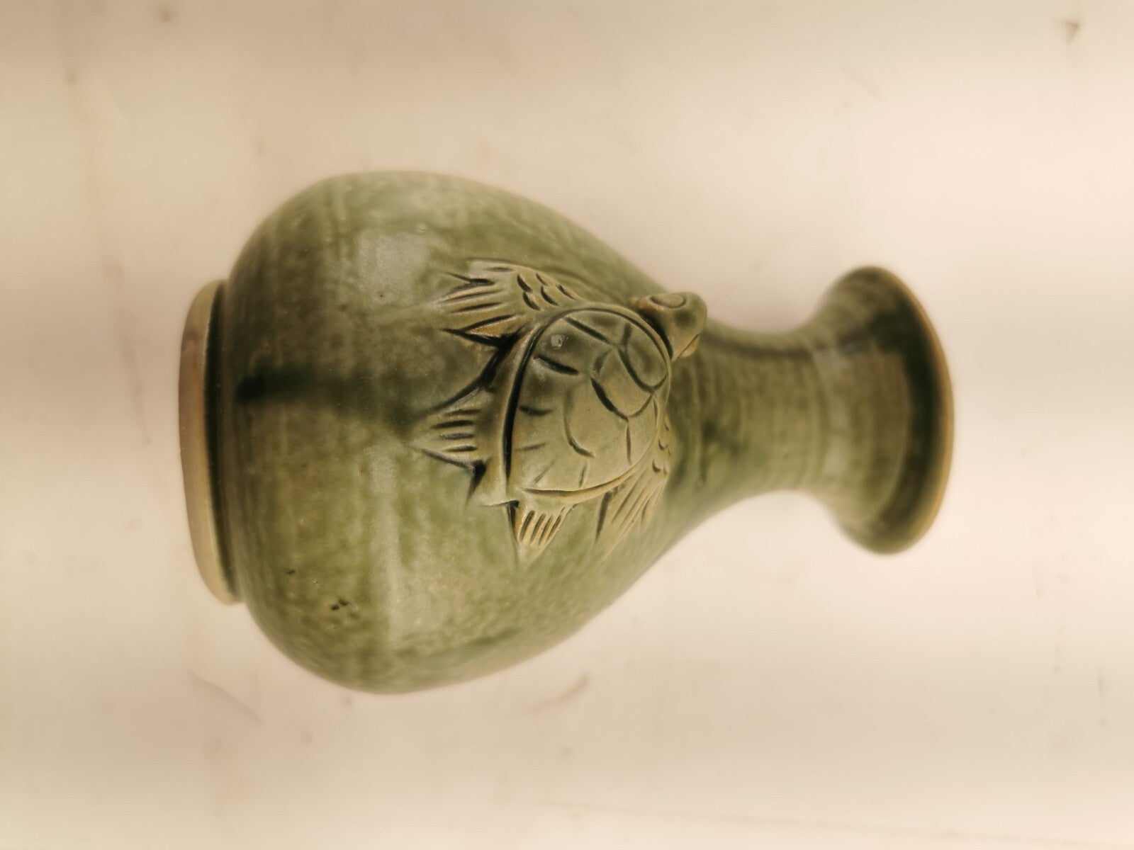 Green vase with a turtle