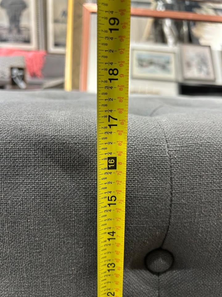 Grey Upholstered Bench - Available in store now! Find measurements in the pictures.