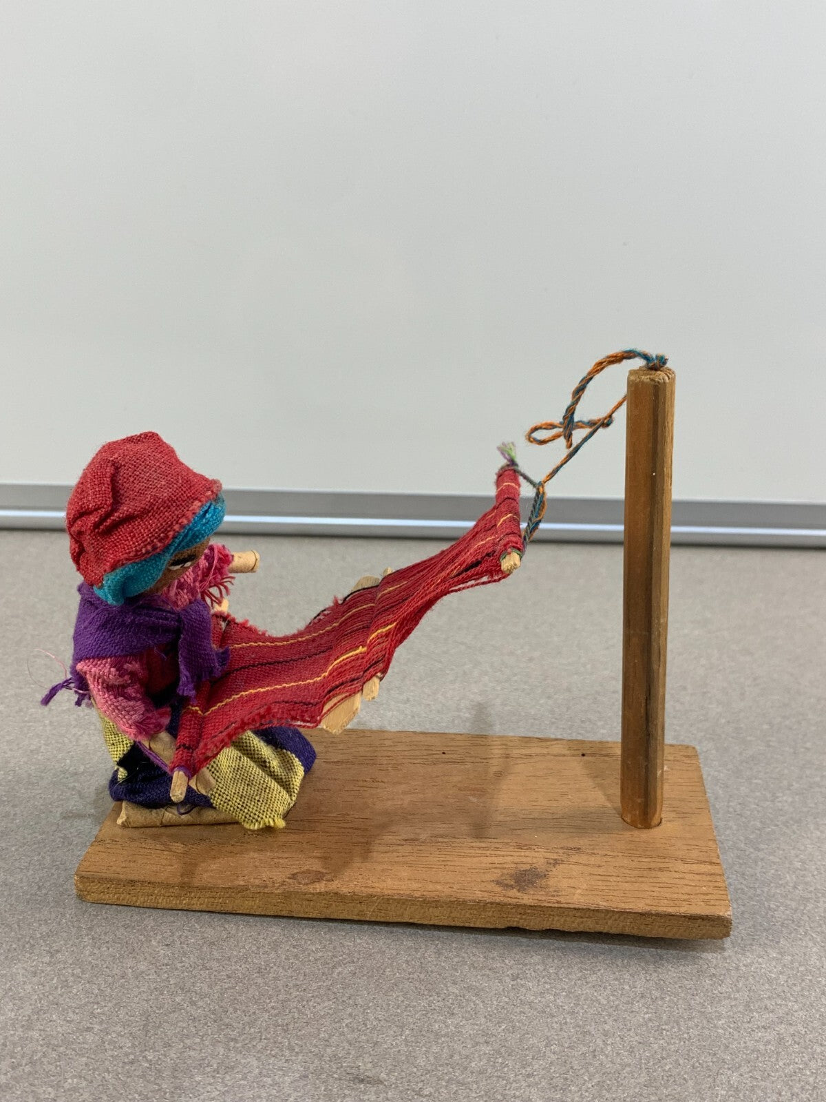 Guatemalan Folk Art Hand Made Rug Weaver Fabric Doll Diorama Vintage