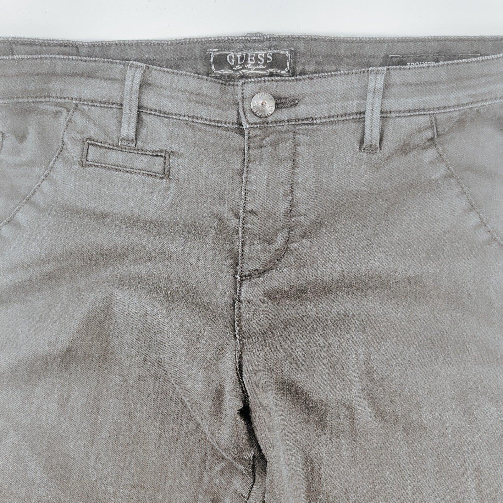 These Guess jeans bring back the Y2K vibes with their low rise and flared legs. The faux pockets add a touch of style, making them a fashionable choice for various occasions. Please note the wear on the fabric, as pictured.