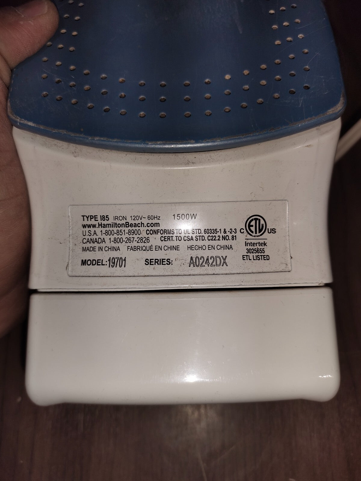 Up for sale is the Hamilton Beach Durathon Iron (Model 19701) , designed to make your ironing experience easier and more efficient. Featuring Durathon ceramic soleplate technology, this iron provides smooth, even heat distribution for wrinkle-free clothes. The built-in cord management system ensures the cord stays out of the way for a hassle-free ironing session. Whether you're tackling tough wrinkles or steaming delicate fabrics, this iron offers reliable performance for all your needs.