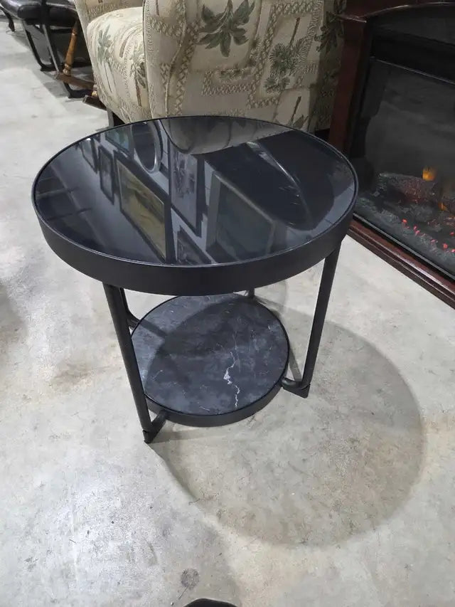 I'm selling a used IKEA Frotorp side table, featuring a sleek black finish with a glass top and a lower shelf. This stylish table is perfect for adding a modern touch to any room. It's in good condition, retails for $99 new so listed half price.