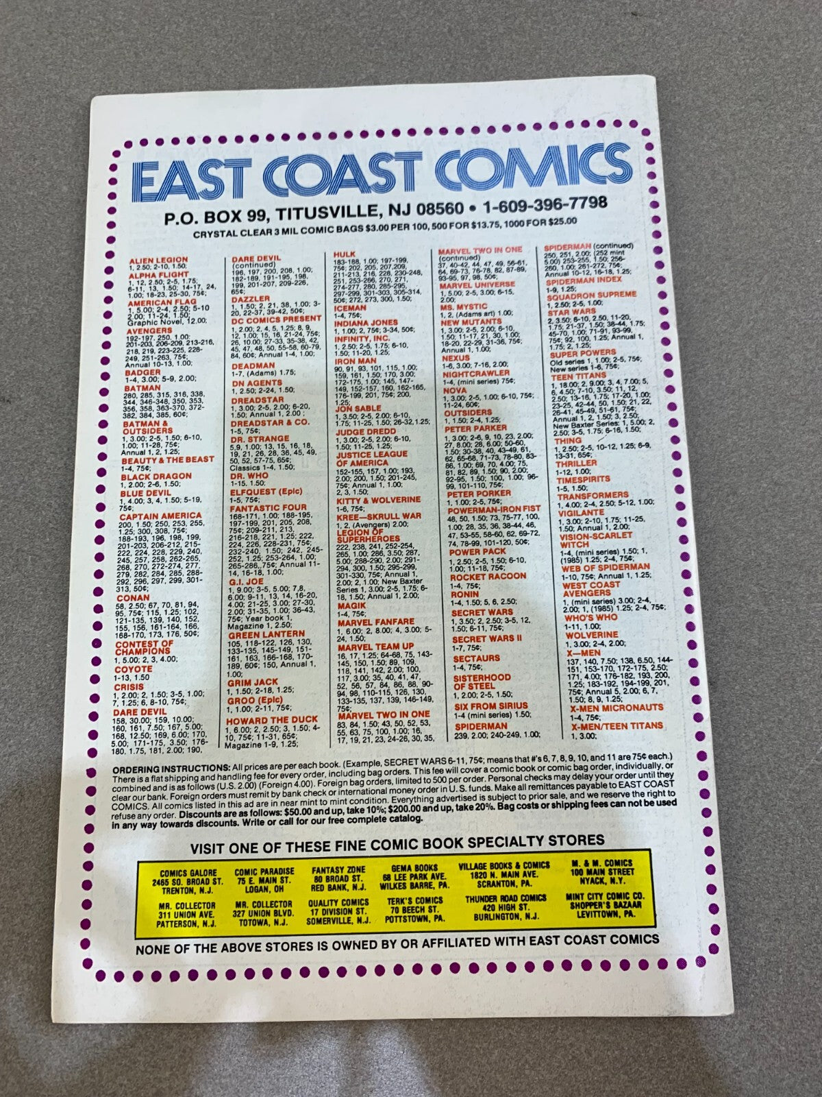 Dive into the Marvel Universe with Longshot #6, the final issue of the iconic 1985 Marvel Mini-Series. Featuring the artistic prowess of Arthur Adams and the storytelling of Ann Nocenti, this comic book presents a captivating narrative with the enigmatic Mojo and Spiral at the center of an epic tale. As a quintessential piece of the Copper Age of comics, this vibrant color issue is a must-have for collectors and fans alike. Published by Marvel Comics, this American-made comic book is a vintage gem that encapsulates the era's style and the superhero genre's timeless allure.
