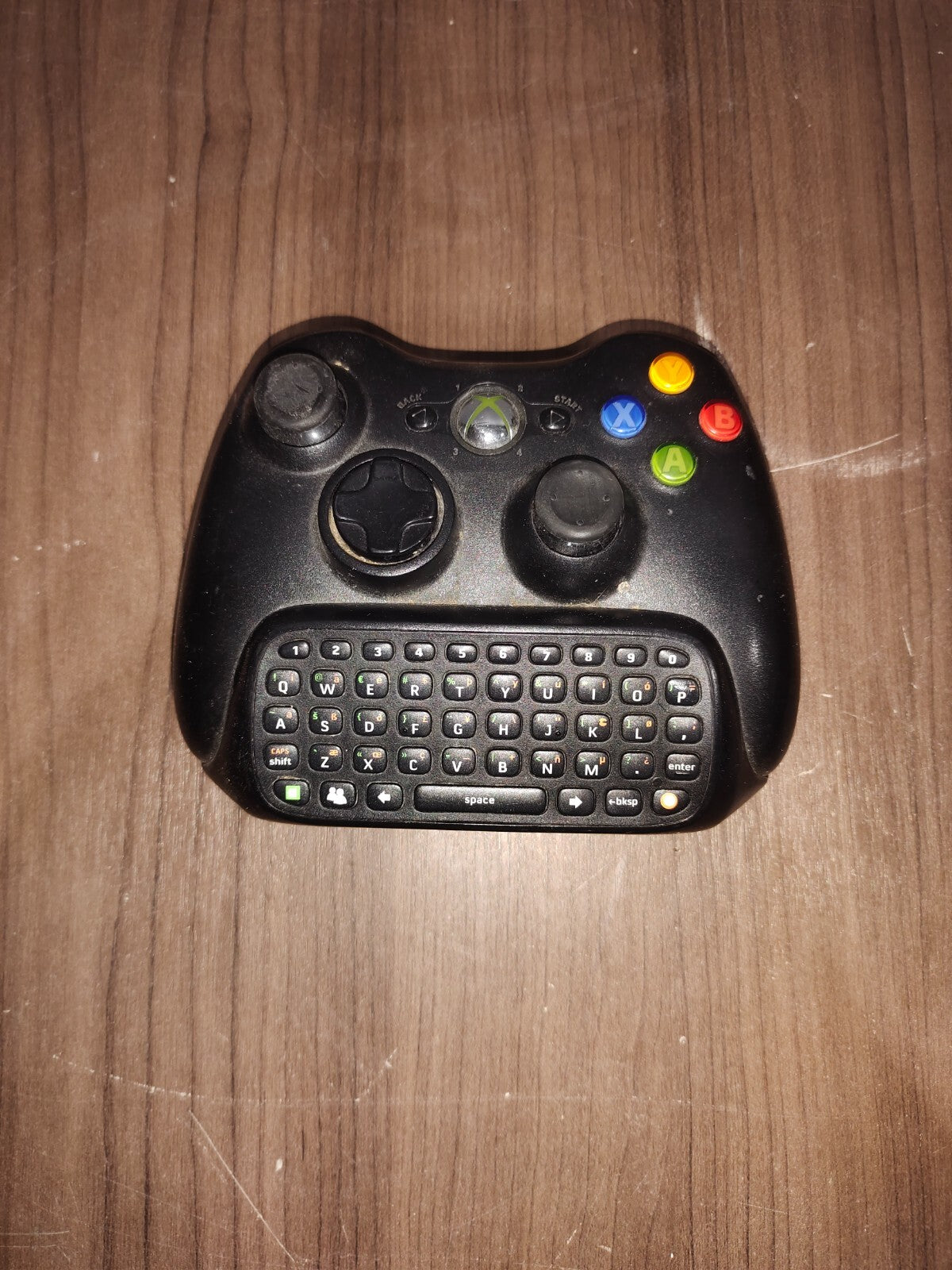 This listing is for a genuine Microsoft Xbox 360 Wireless Controller in black, complete with the Xbox 360 Chatpad Keyboard Attachment . This setup is perfect for gaming, messaging friends, and navigating the Xbox dashboard with ease.