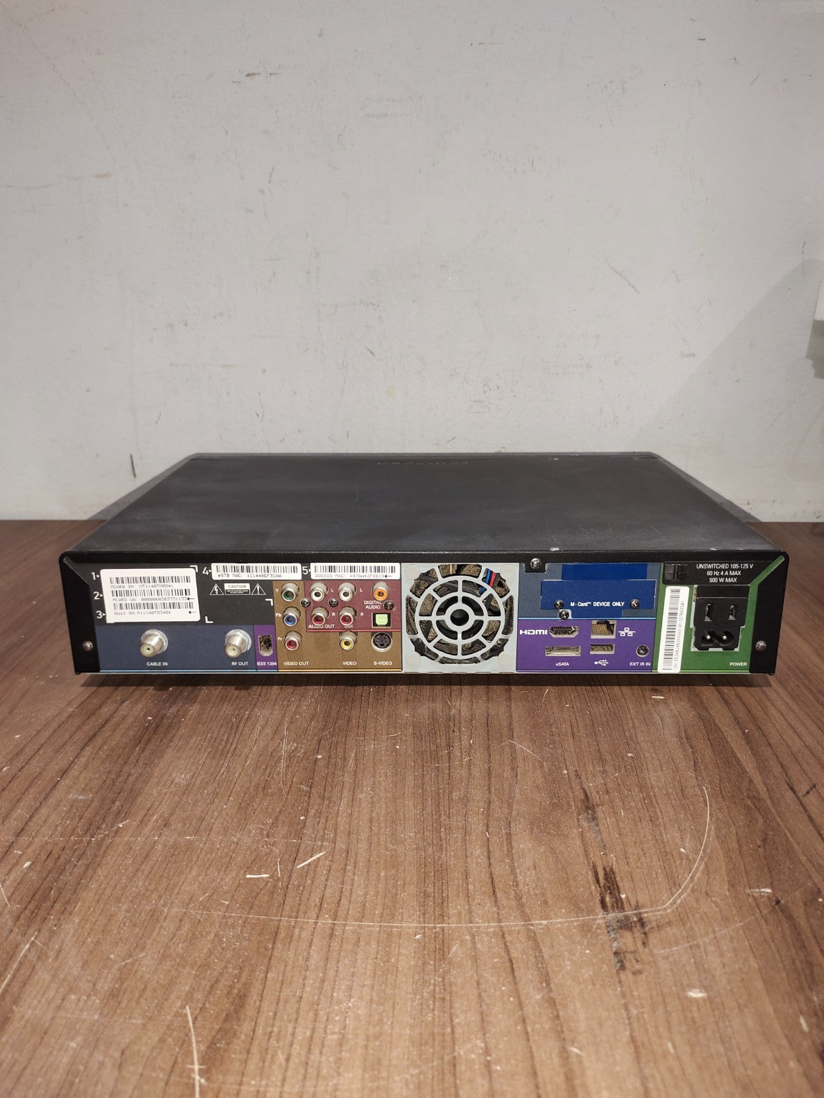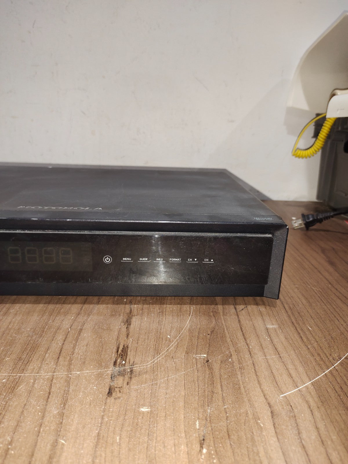 This is the Motorola DCX3400 , a robust high-definition digital cable box with dual tuners and DVR capabilities. With a built-in 500 GB hard drive, you can record up to 60-80 hours of HD programming—and expand storage further via an external eSATA drive. Perfect for cable users looking for reliable performance, flexible recording, and CableCARD compatibility (check with your provider).
