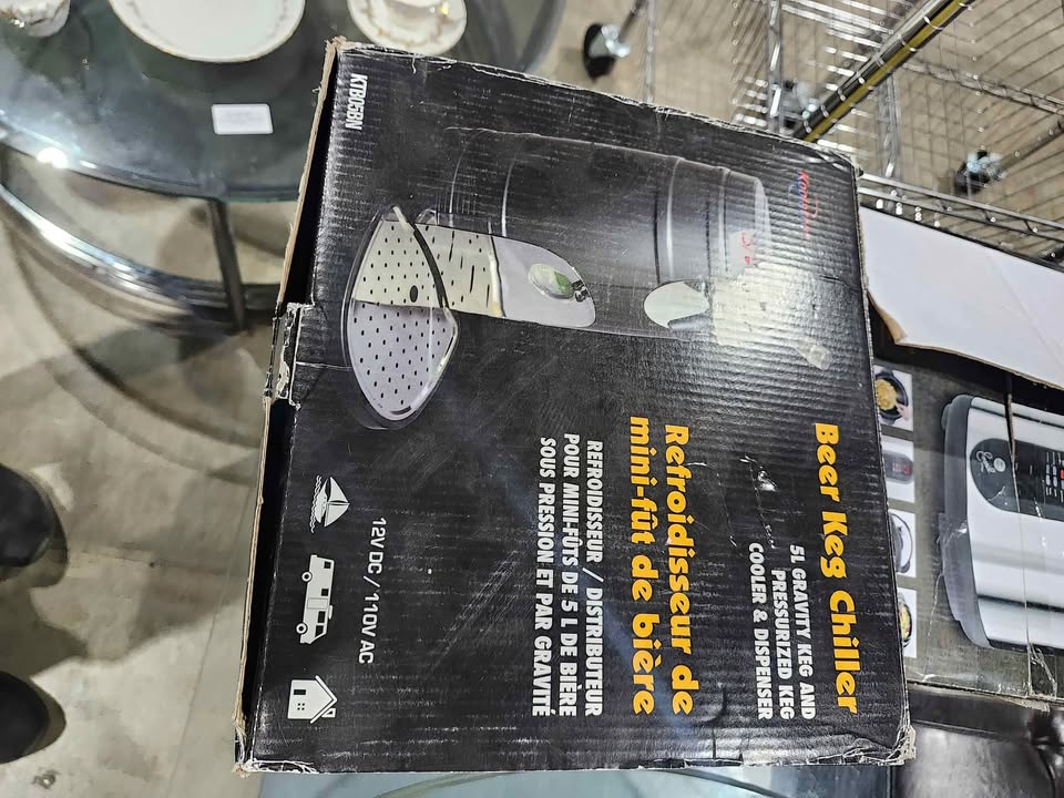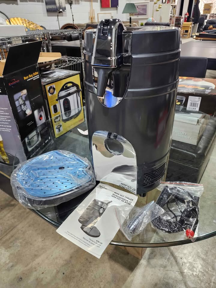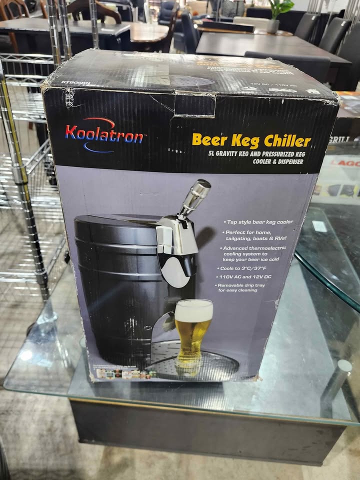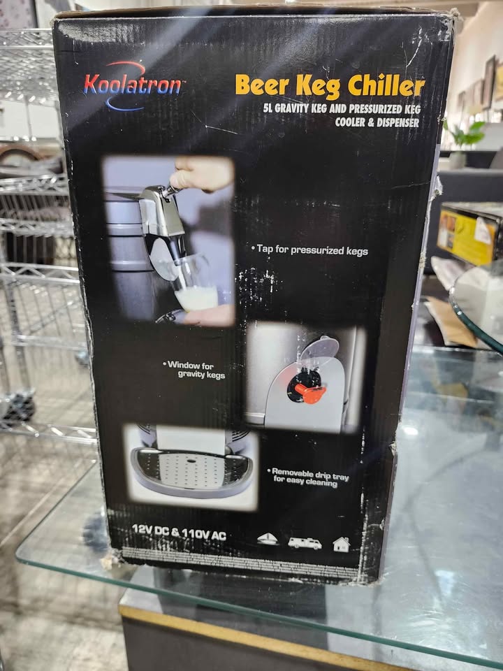 Brand new and never used. The Koolatron Beer Keg cooler will be a hit at your next party. Now you can cool and dispense your favorite beer using a 5 liter gravity and pressurized keg. The Koolatron Beer Keg Cooler utilized state-of-the-art thermoelectric cooling technology, which guarantees to be ultra-quiet and vibration-free. This unique product is environmentally friendly, since it does not use any harmful CFC's or polluting coolants. The Keg Cooler fits most 5 liter kegs (both pressurized with top dispensing as well as gravity dispensing kegs). Great for your home bar, rec room, or the next tailgate party. Get one today, and treat yourself and your guests with the Koolatron Beer Keg Cooler.
