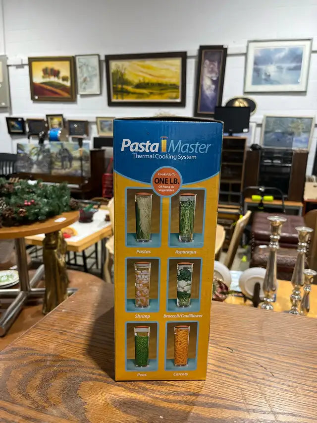 This is a Pasta Master thermal cooking system, brand new in its original packaging, designed for easy and efficient pasta and vegetable cooking. It's a convenient way to cook pasta without the need for boiling water! If the ad is still up, it's still available! The price is $15+5%GST 6215 3rd St SE, Unit C11 - Rebound Centre Daily 10AM - 5PM