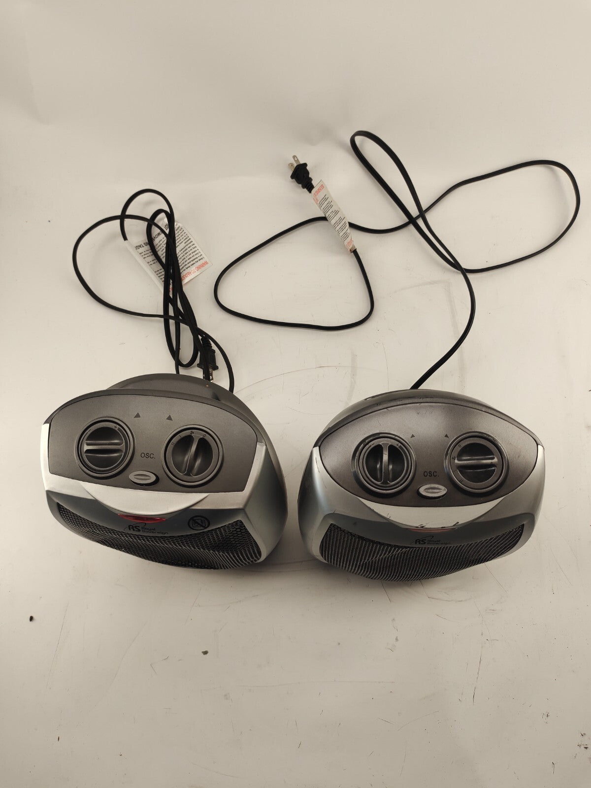 Offering a set of two Royal Sovereign HCE-160 Compact Oscillating Ceramic Heaters. These heaters are perfect for small to medium-sized rooms, providing efficient warmth and adjustable settings.