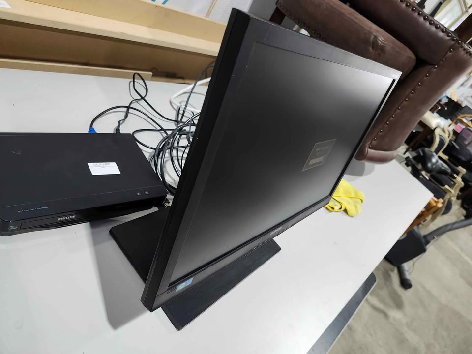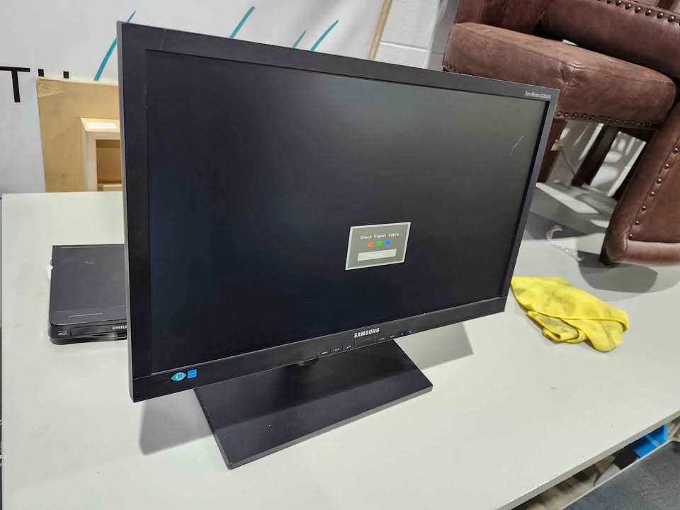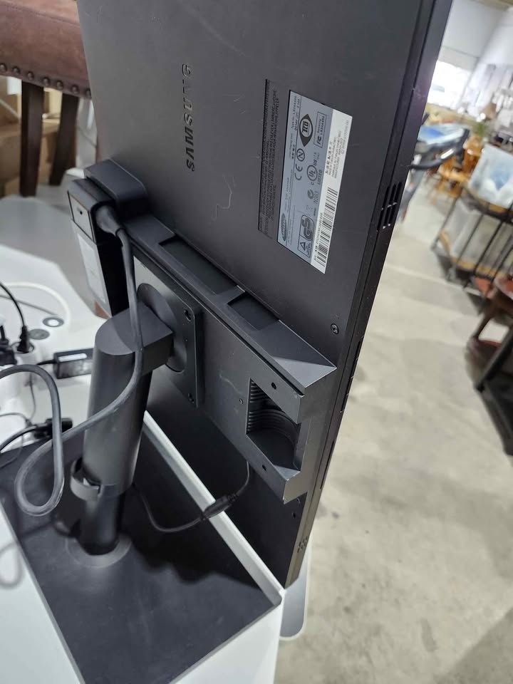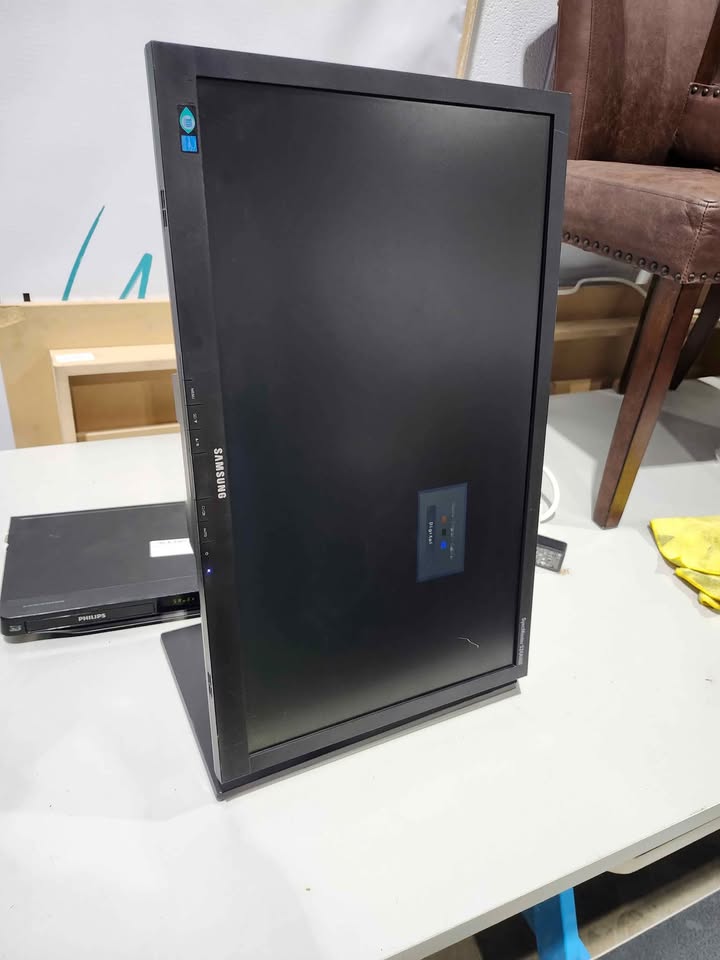 Tested and works perfectly. Can be flipped borh horizontal and vertically and is also height adjustable. Has a small scratch on corner but nothing to major. . . . . . . . . .