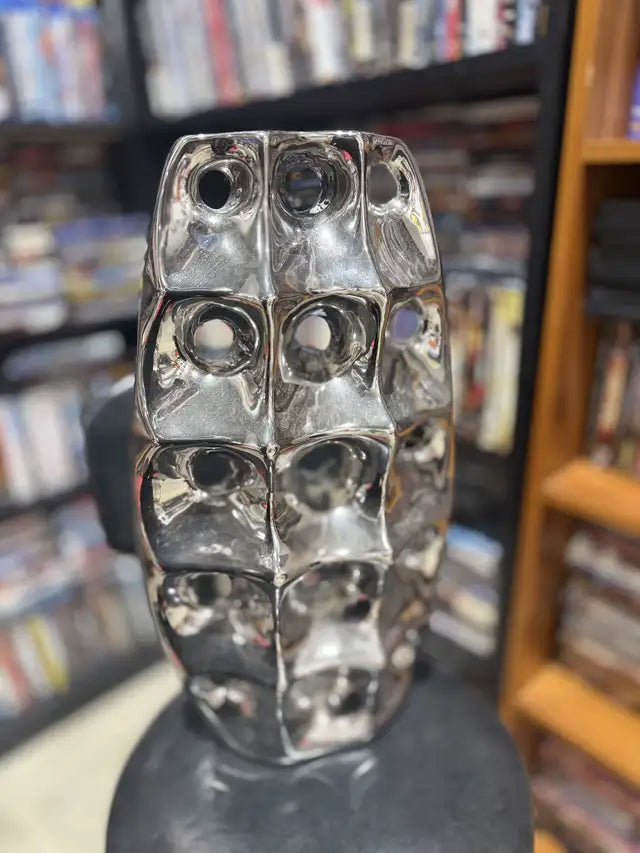 Add a touch of modern elegance to your home with this used, eye-catching silver vase, featuring a unique geometric design with multiple openings. This piece will enhance any room. There are no visible defects on the vase. * Material: Ceramic with silver finish * Design: Geometric with multiple openings Looking to add a little sparkle to your space? Don't miss out! And remember, if the ad is up, it's still available, so you can bring this beauty home today!
