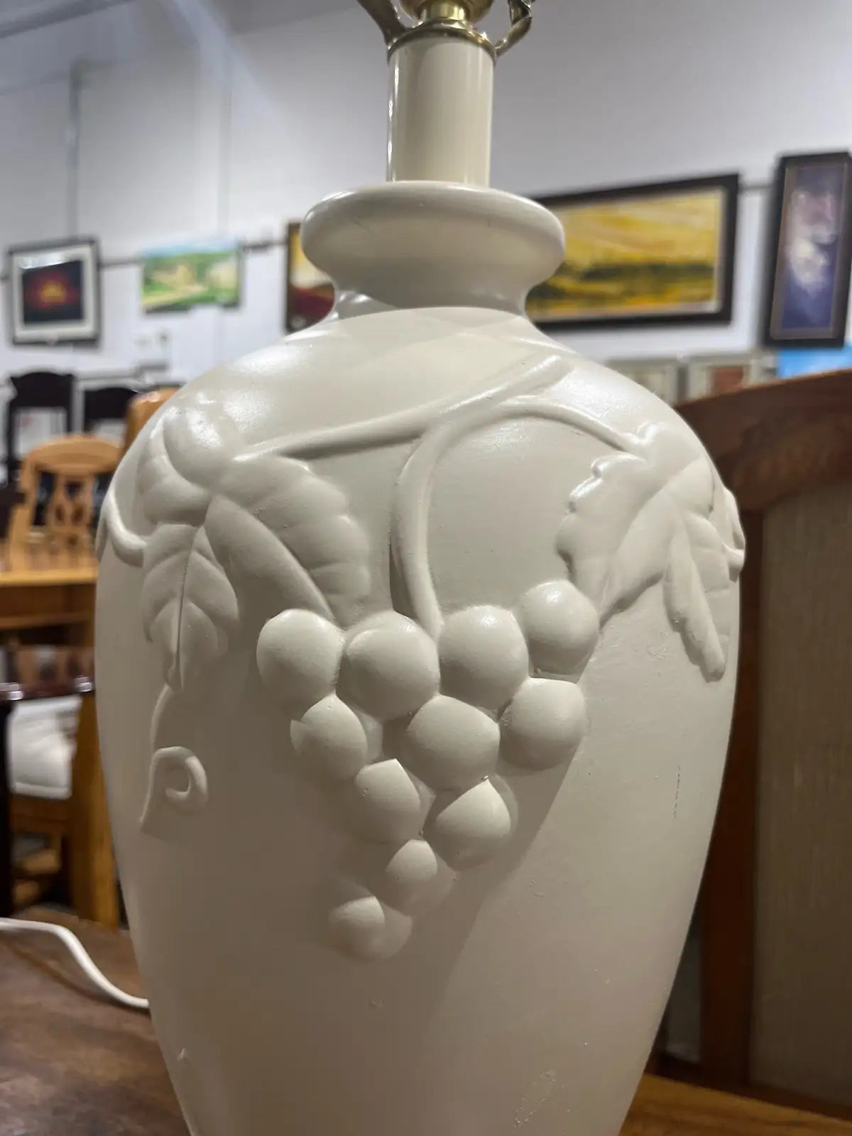 This is a used table lamp in good condition. It features a neutral colour and grape design. Perfect for adding a touch of classic style to any room. the lamp comes without shade Length 28” The price is $30 + 5%GST Remember, if the ad is still up, the lamp is still available, so no need to ask! This little lamp is just waiting to light up your life!