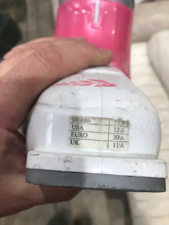 These used Tecno Pro Enjoy 7.0 ski boots are ready for the slopes! They are a Mondo size 12 1/2, USA size 12 1/2, EURO size 30 1/2, and UK size 11 1/2. They have some scuffs and signs of use, but they are perfectly functional for carving down the mountain.