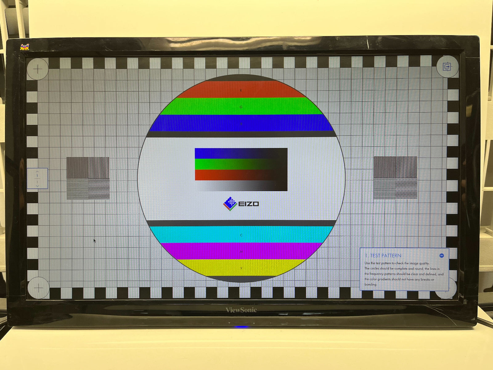 *The discoloration on the test pattern photo is an artifact of image compression and not present on the actual display.