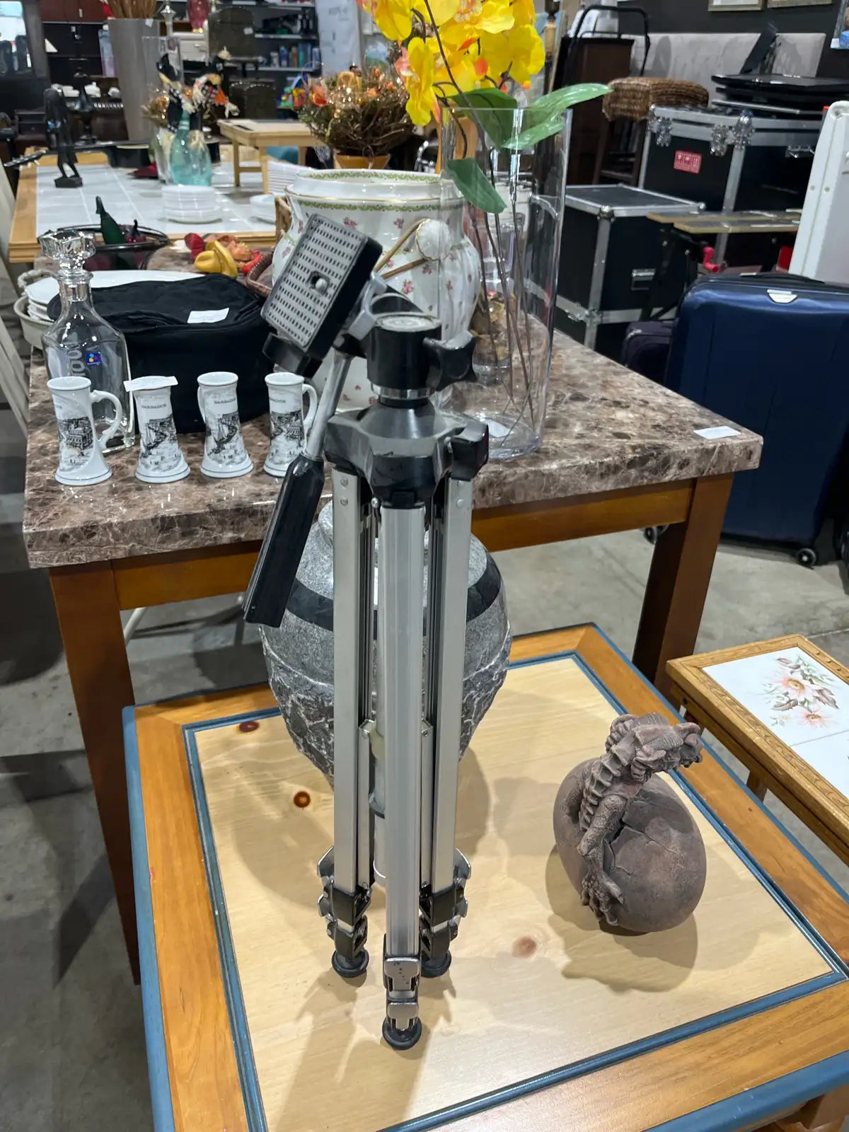 Capture your memories with this vintage adjustable tripod made in Taiwan! It's ready to help you stabilize your shots. Please note that this is a used item, and its condition reflects its age with some wear and tear, but it still works. These tripods are becoming more rare, making this a must have for collectors! * Adjustable Height * Made in Taiwan The price is $25+5%GST 6215 3rd St SE, Unit C11 - Rebound Centre Daily 10AM - 5PM If the ad's up, it's up for grabs!