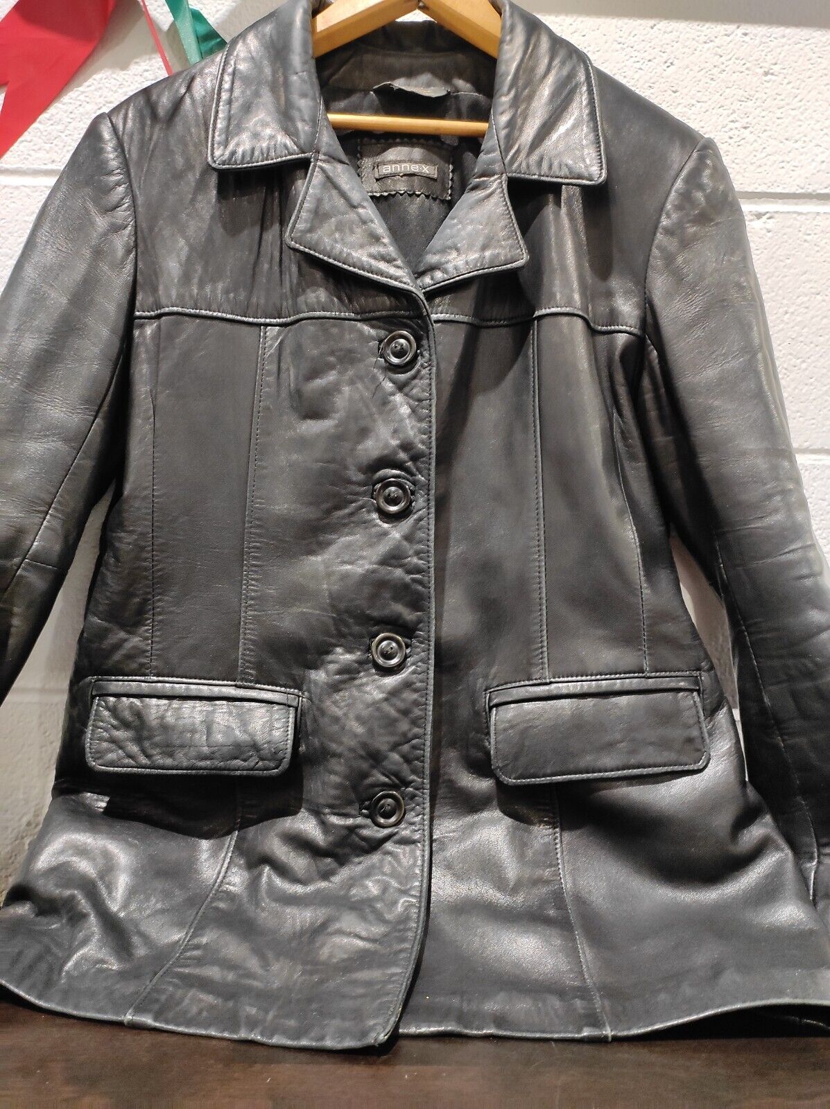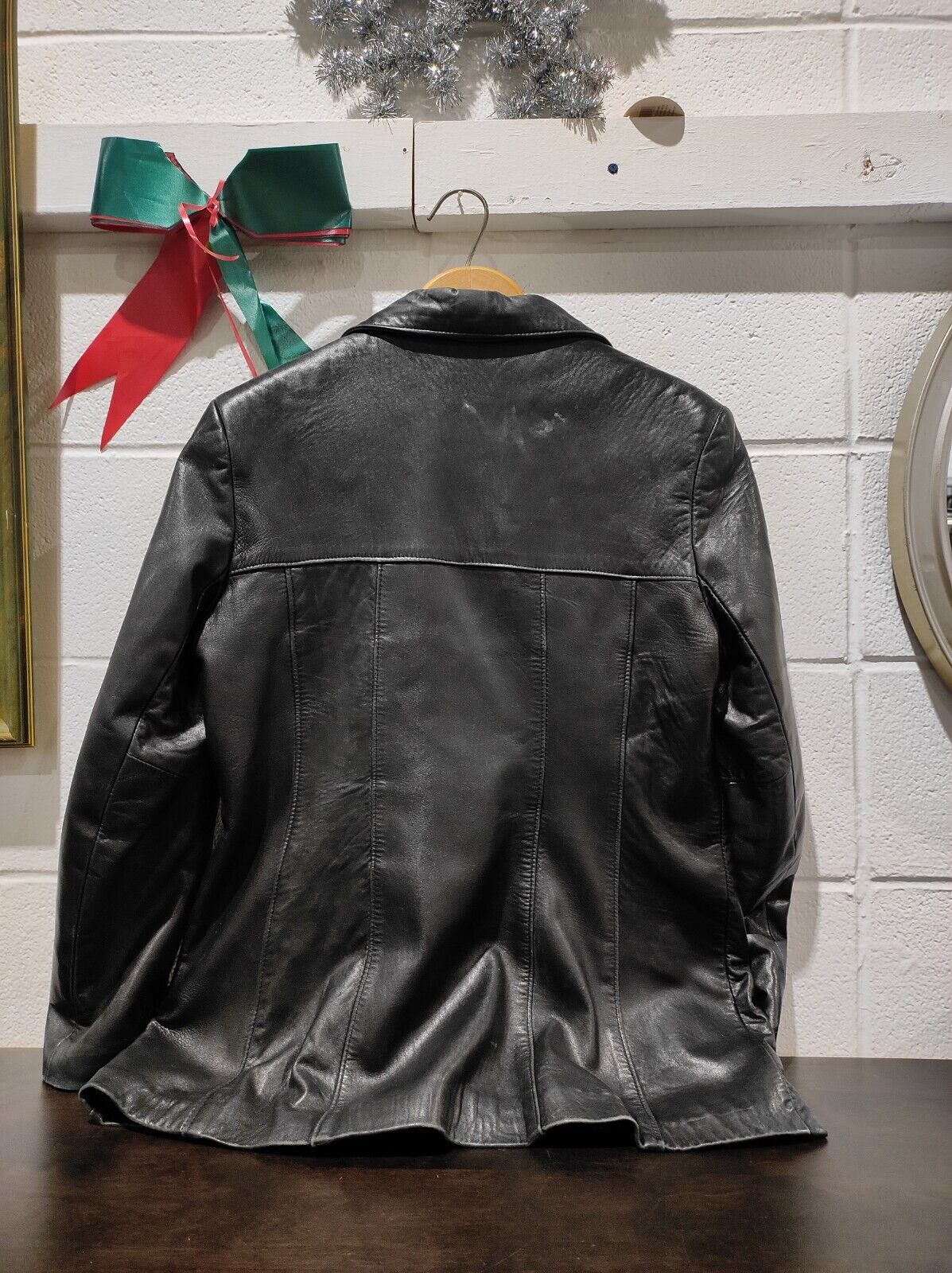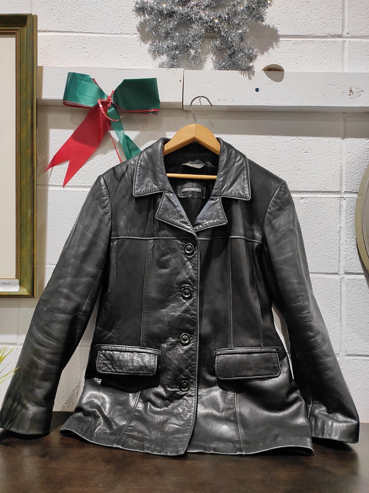 Vintage Annex Petite Women size XL Black Genuine Leather Jacket Zip