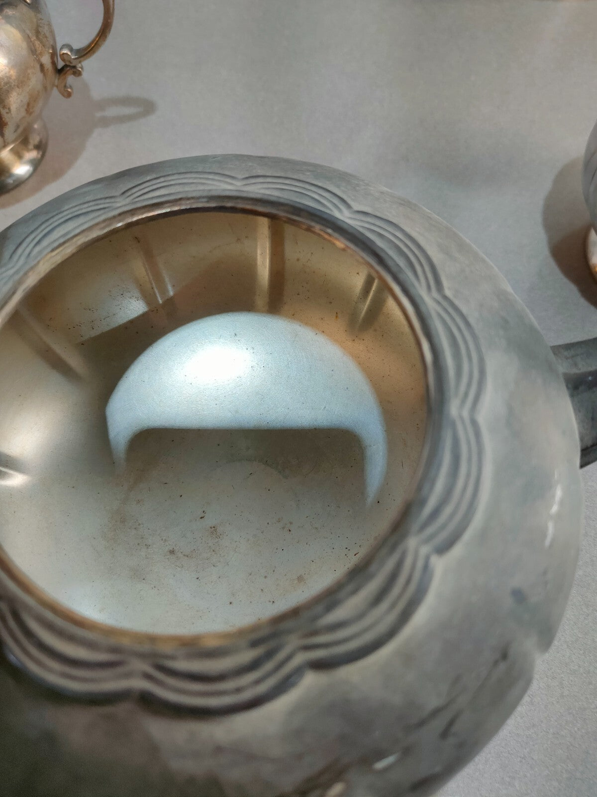 Vintage Art Deco Four Piece Primrose Plate B.M.Spouts Tea Service/E.P. Copper/
