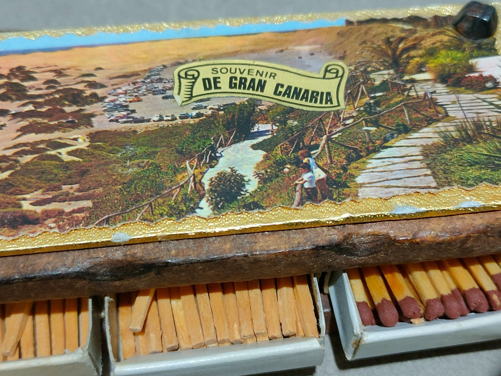 Vintage Beautifully Crafted Wooden Matchbox Holder Box SOUVENIR DE GRAN CANARIA