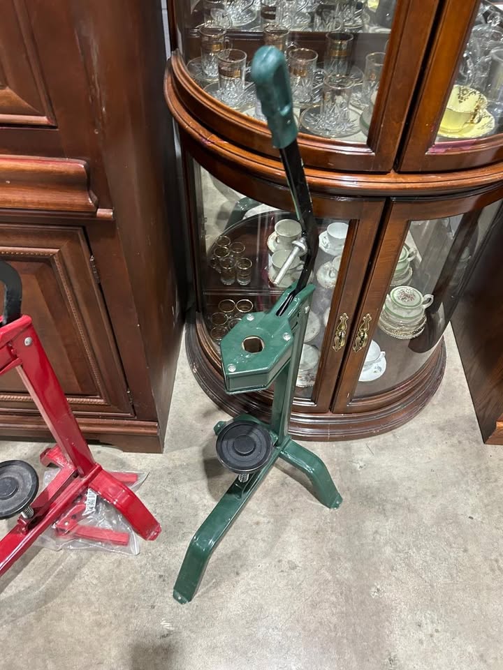 Green metal bottle capper. Lever action. Sturdy base. Great for home canning or bottling.