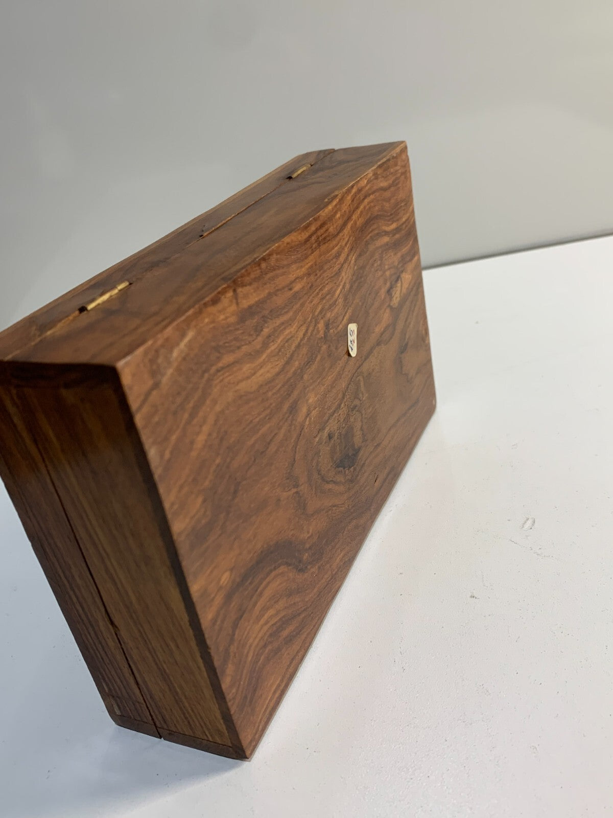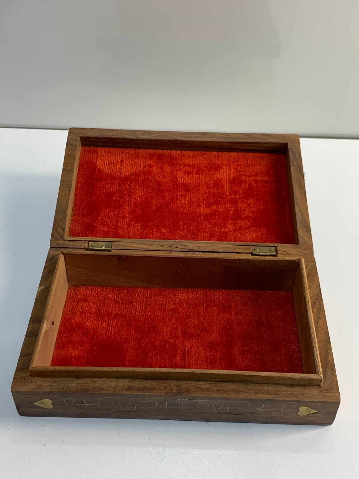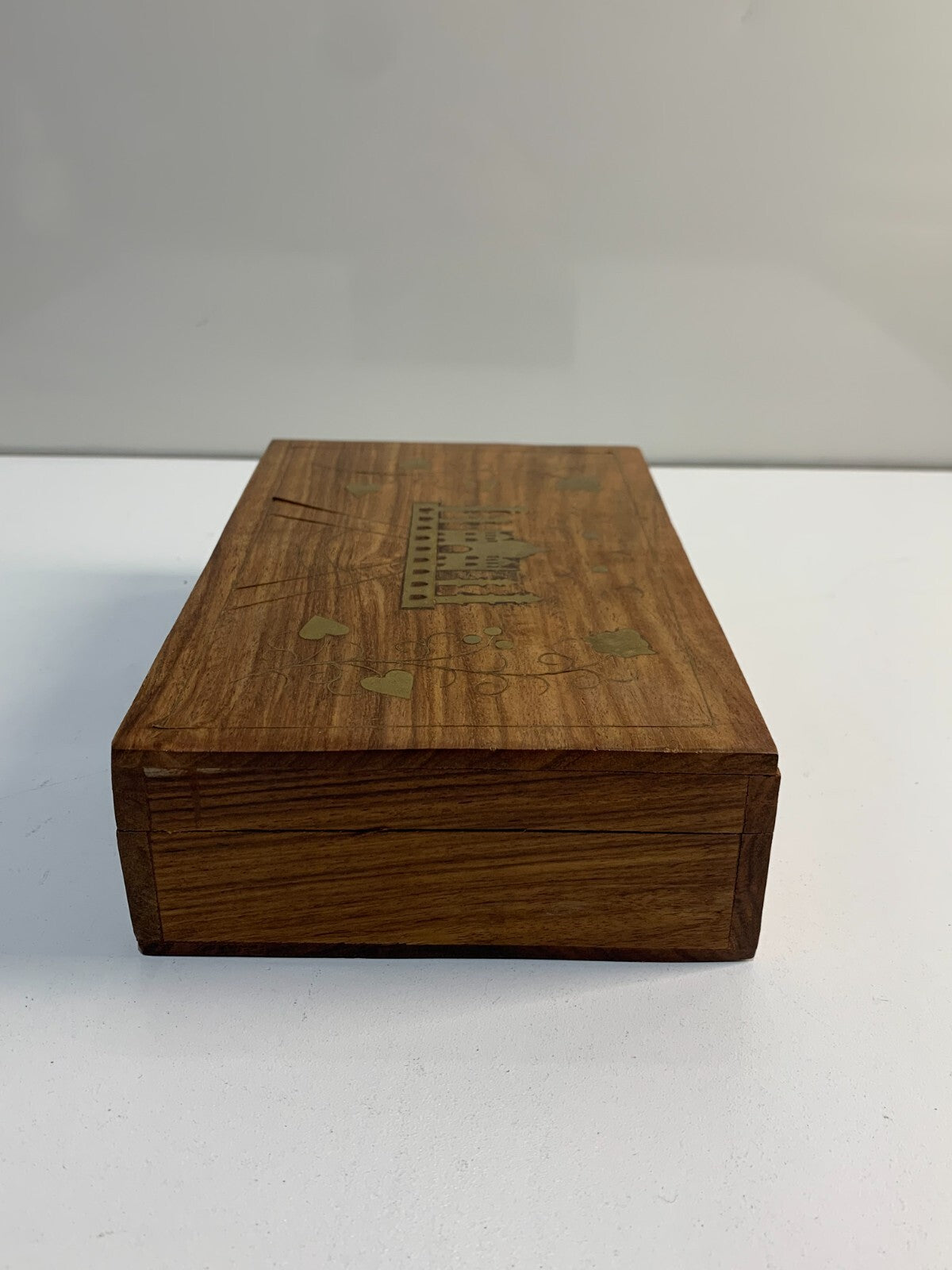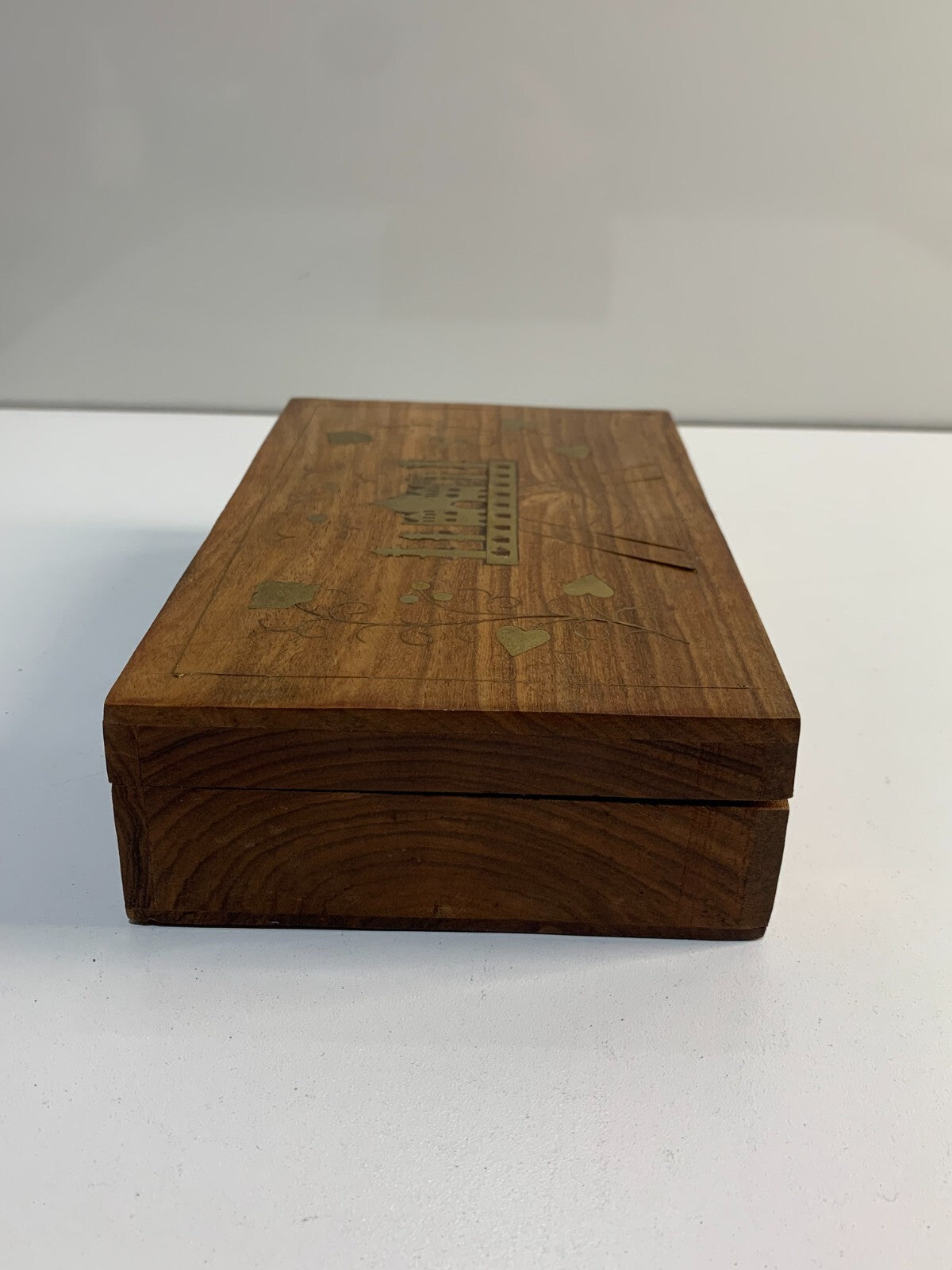 Vintage Carved Wood Jewelry Box with Taj Mahal Gold Inlay