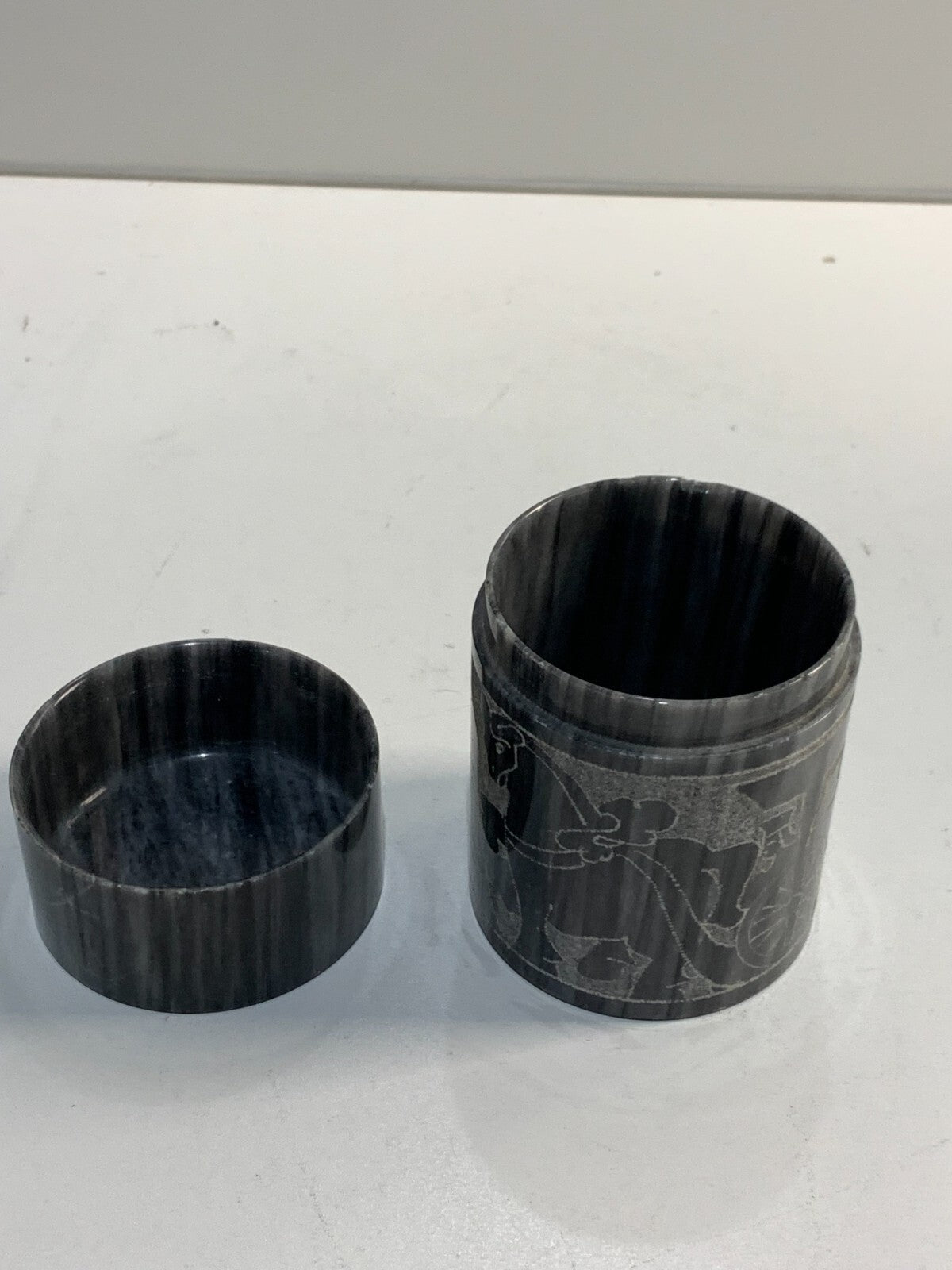 Explore the timeless elegance of this Vintage Collectible Black & White Carved Marble Jar, a stunning addition to any decor collection. Crafted from high-quality marble, the jar features exquisite carvings that add a touch of sophistication to its sleek black and white marbled pattern. Ideal for those who appreciate the beauty of classic design, this jar serves as a versatile piece that can enhance the aesthetic of any room. Whether used as a decorative accent or as a functional storage solution, this marble jar is sure to impress with its lasting charm and craftsmanship.