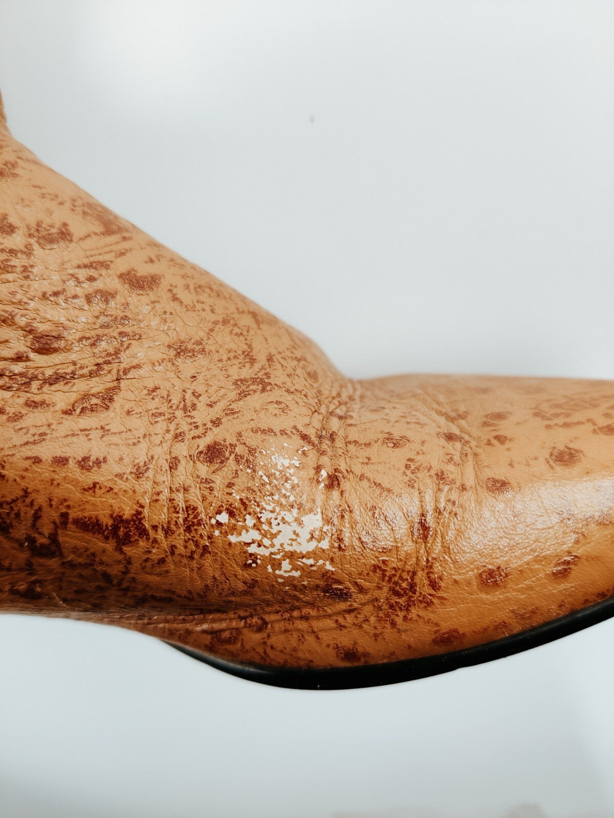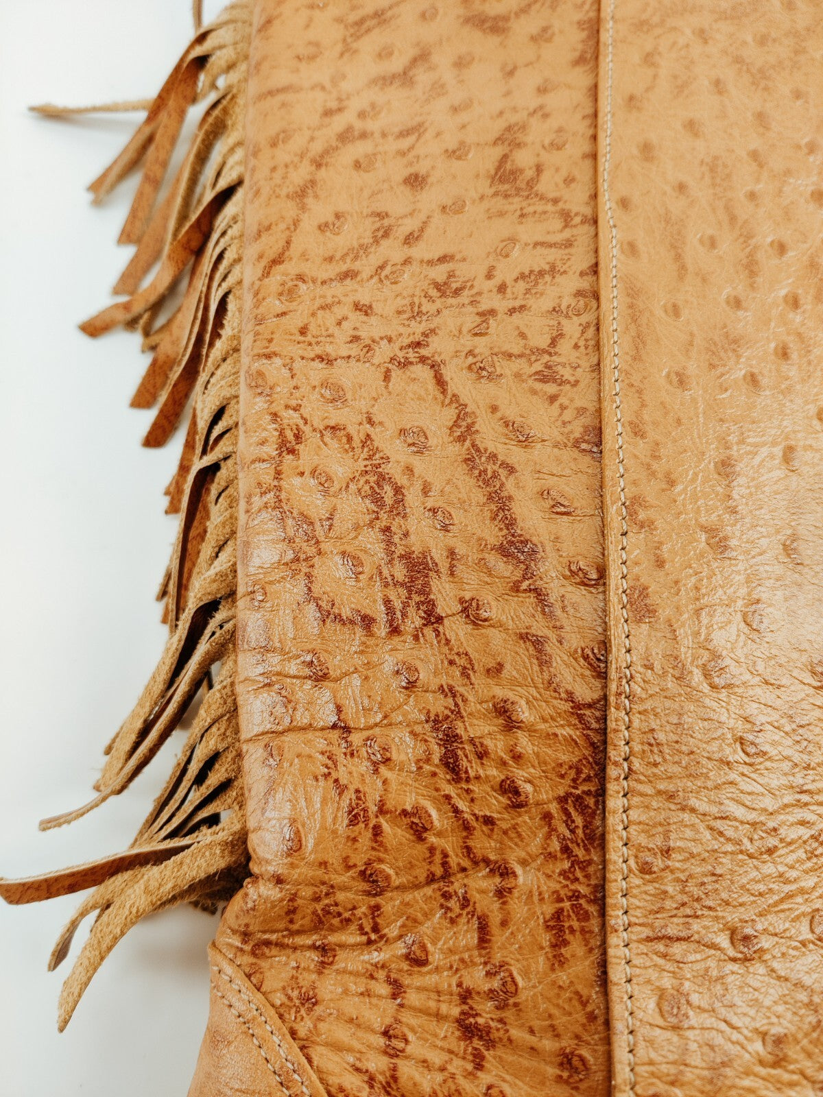 Step into style with these stunning Vintage Cougar Tan Ostrich Leather Fringe Boots. Made from luxurious ostrich leather, these boots feature playful fringe detailing that adds a touch of bohemian flair to any outfit. Perfect for festivals, casual outings, or making a statement, these boots combine vintage charm with contemporary style.