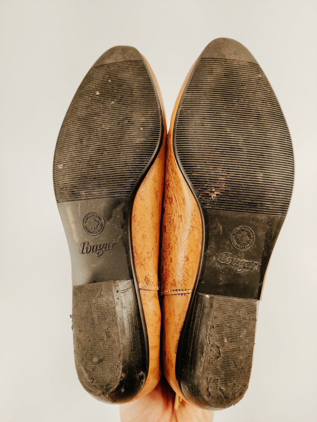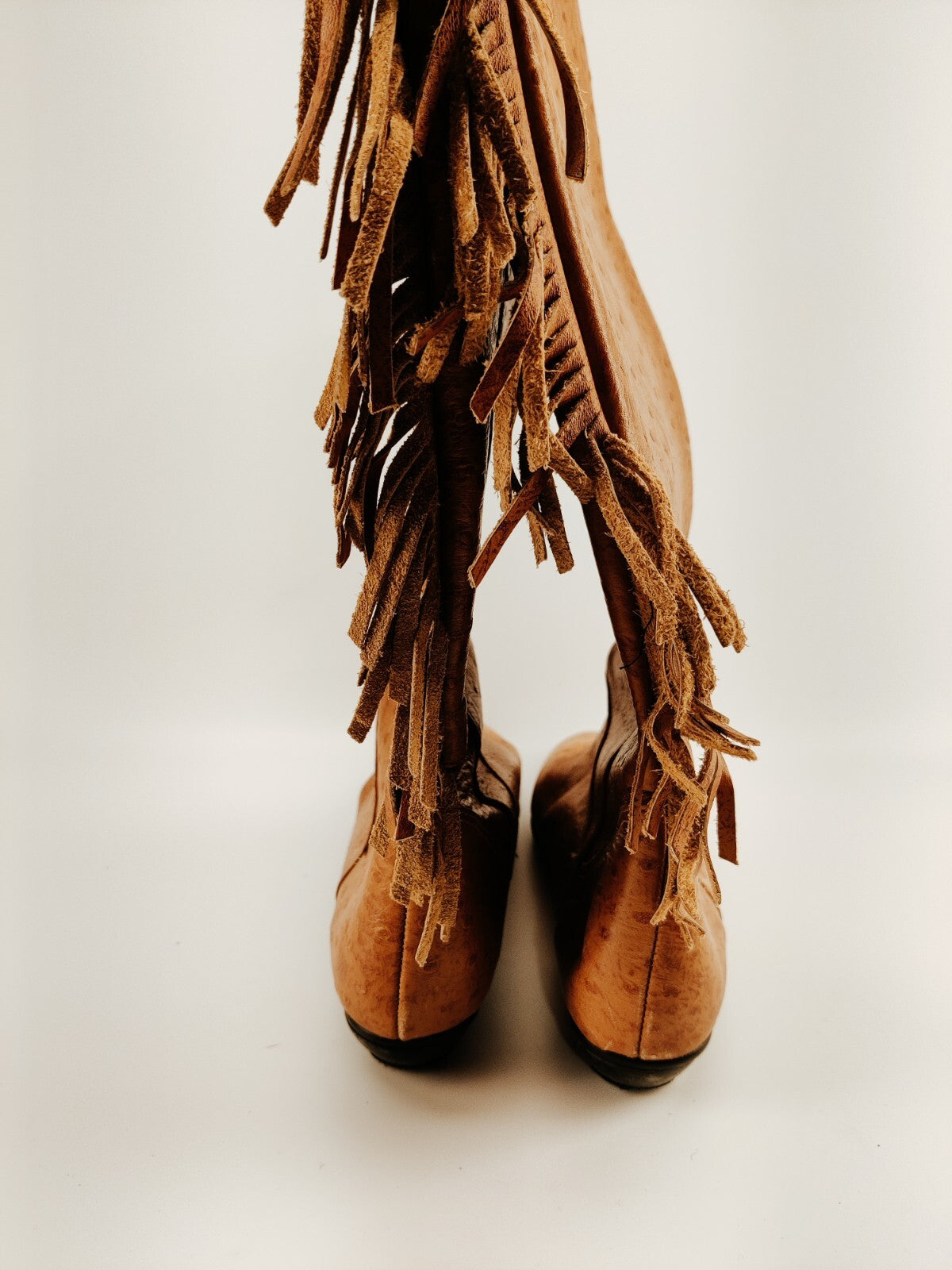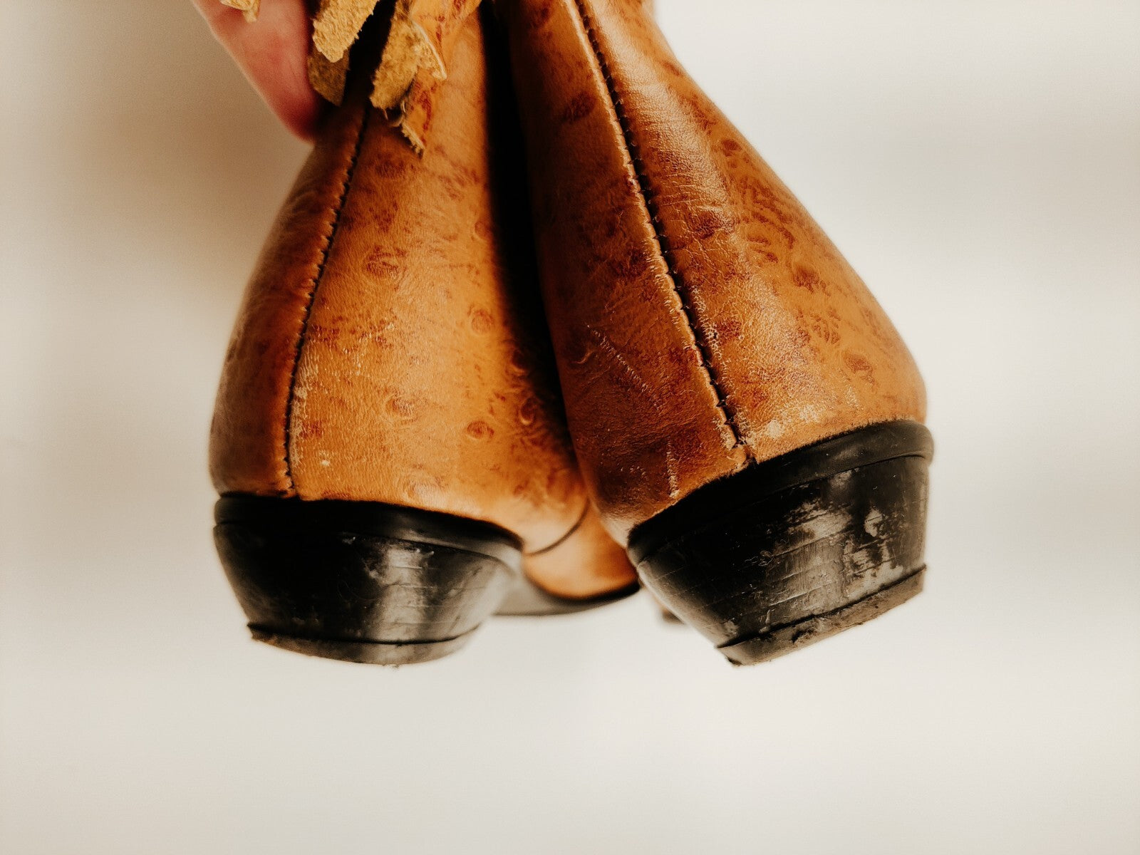 Vintage Cougar Tan Ostrich Leather Fringe Boots Women's Size 7.5