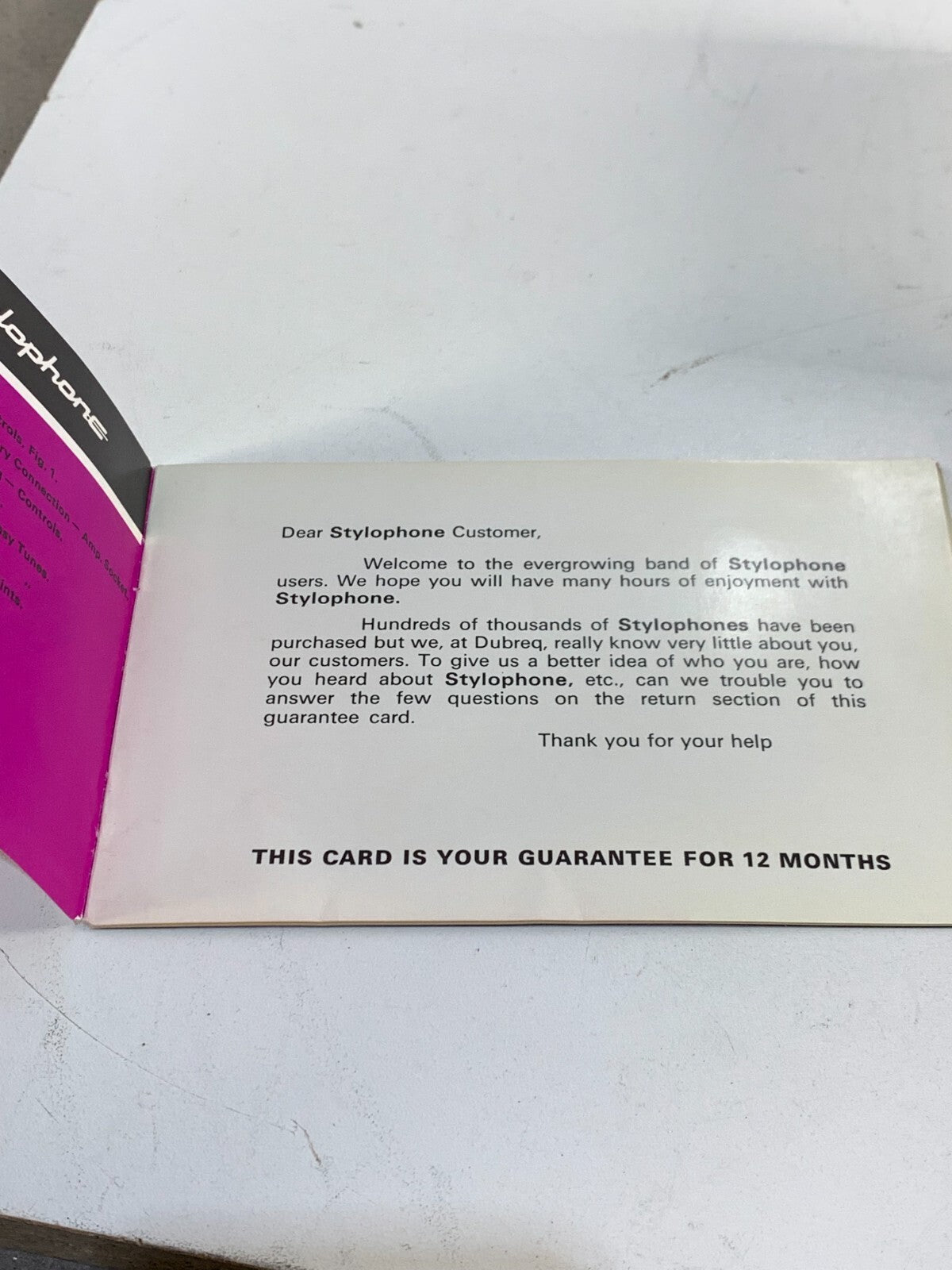 Elevate your musical experience with the Vintage Dubreq Stylophone, a retro pocket electronic organ that combines portability with classic design. Perfect for musicians who appreciate the tactile and visual charm of vintage instruments, this Stylophone is a testament to enduring quality and style. Featuring a sleek, compact layout, the organ is ideal for both practice and performance, delivering a rich sonic range that's been cherished by enthusiasts for generations. Whether you're a seasoned player or just starting out, this instrument promises to be a valuable addition to your musical arsenal.