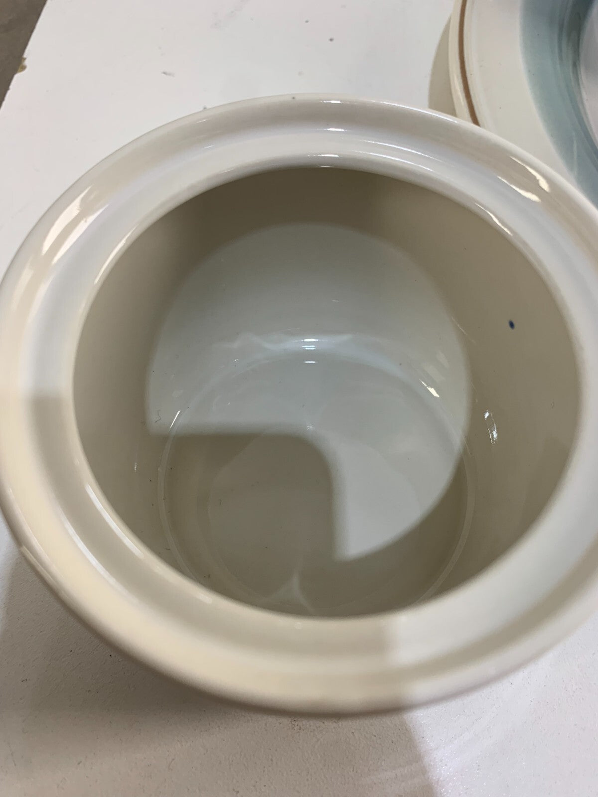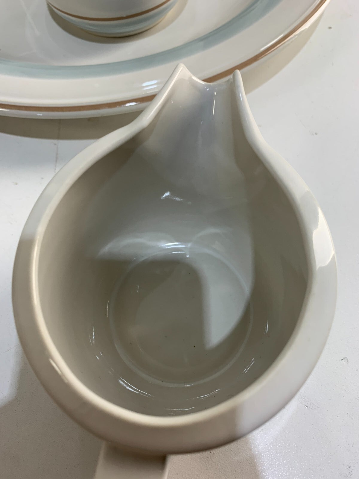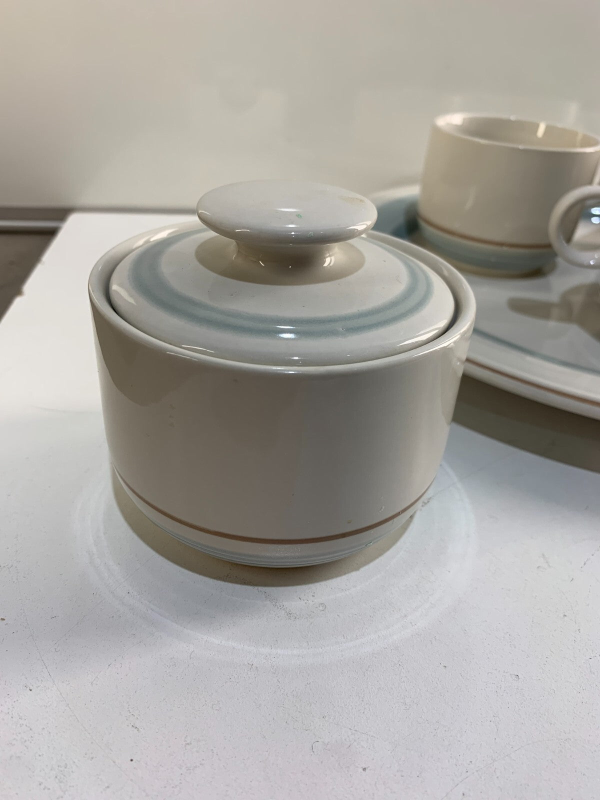 Vintage Genuine Stoneware Country Morn Coffee Cups, Creamer, Sugar Bowl & Plate
