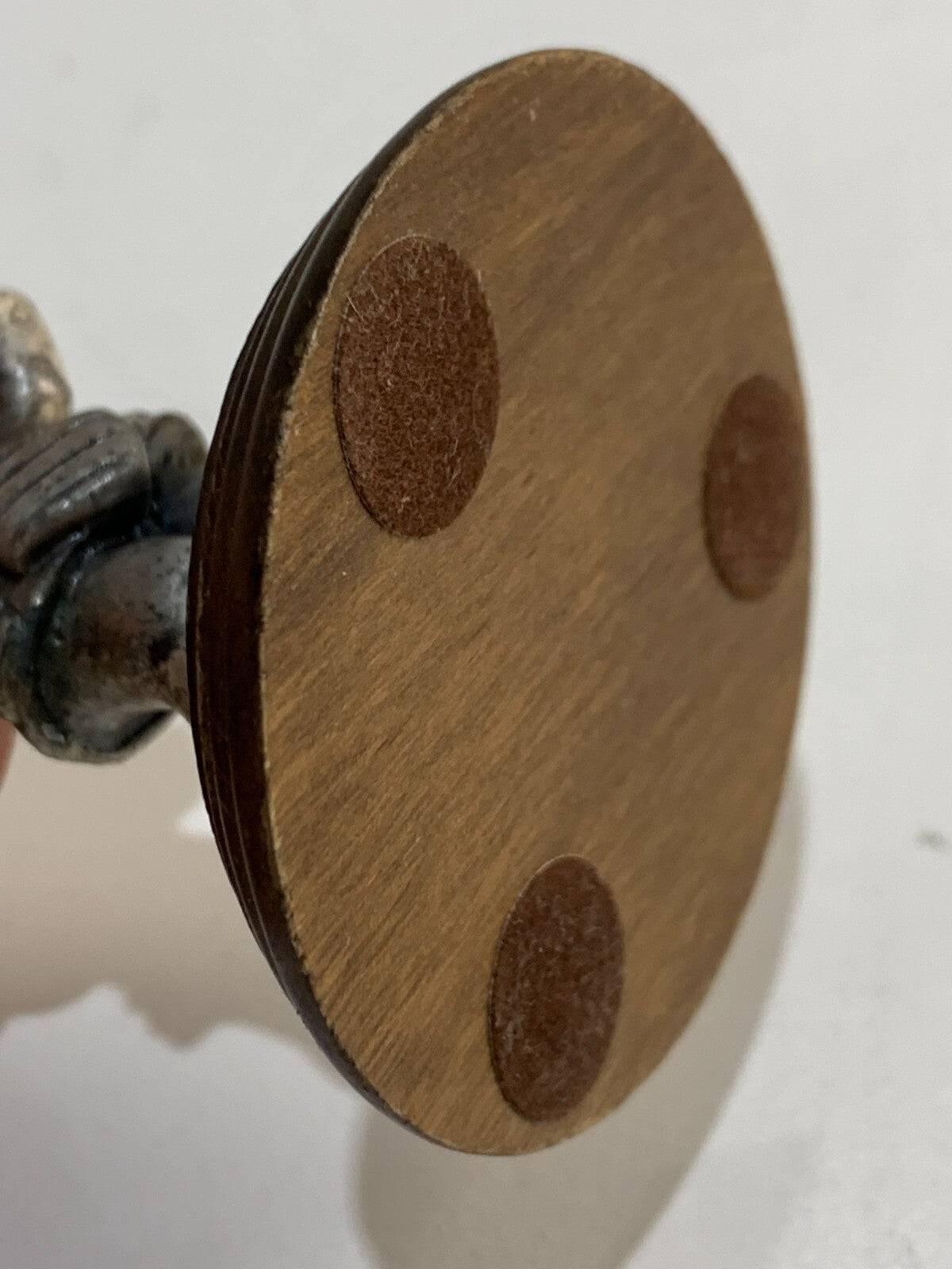 Capture the whimsical charm of a vintage George Good Cast Pewter Clown, artfully perched on a wooden base adorned with a delicate floral pattern. The clown figurine, featuring intricate pewter details, exudes a timeless allure that effortlessly adds a touch of nostalgia and warmth to any room. This piece is a testament to the exquisite craftsmanship of its era, with the wood base providing a sturdy and natural foundation for the clown's playful pose. Ideal for collectors and enthusiasts of unique decorative art, this figurine is sure to be a conversation starter and a cherished addition to any collection.