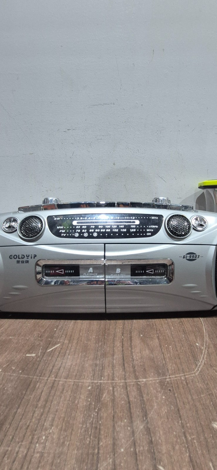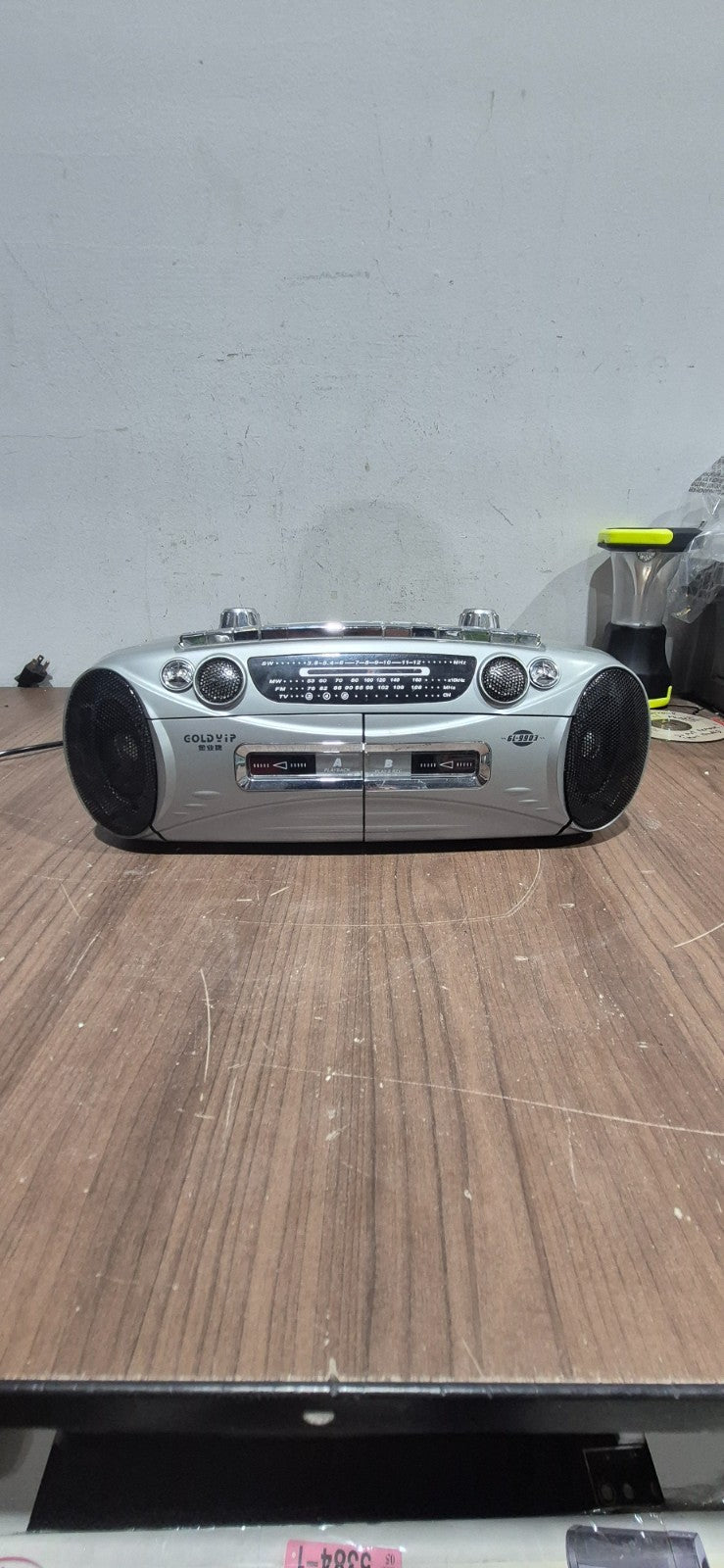This GOLDVIP GL‑9903 boombox is a retro gem, featuring dual cassette decks and AM/FM radio in a classic vintage design. Perfect for collectors or anyone nostalgic for the analog era, it offers playback and recording capabilities along with built-in speaker sound.