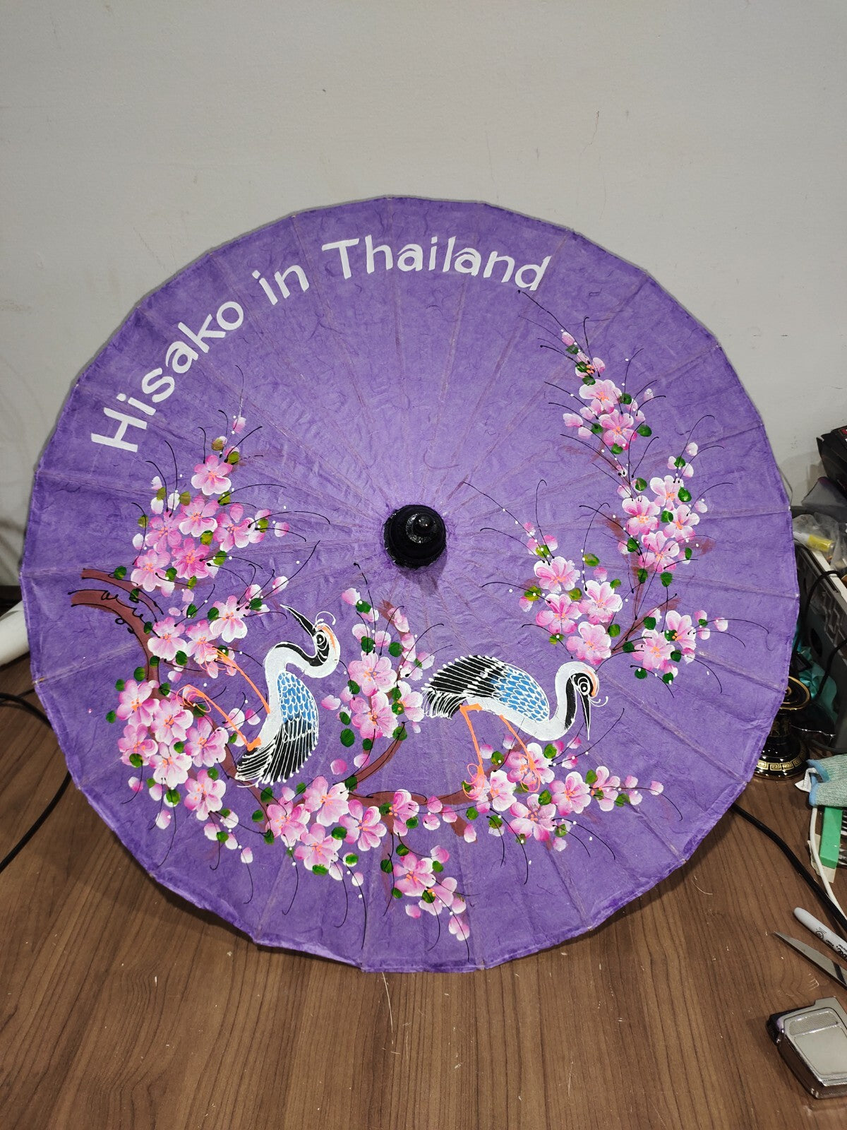 Signed by Artist: The umbrella is signed "Hisako In Thailand" , indicating its authenticity and artistic value.