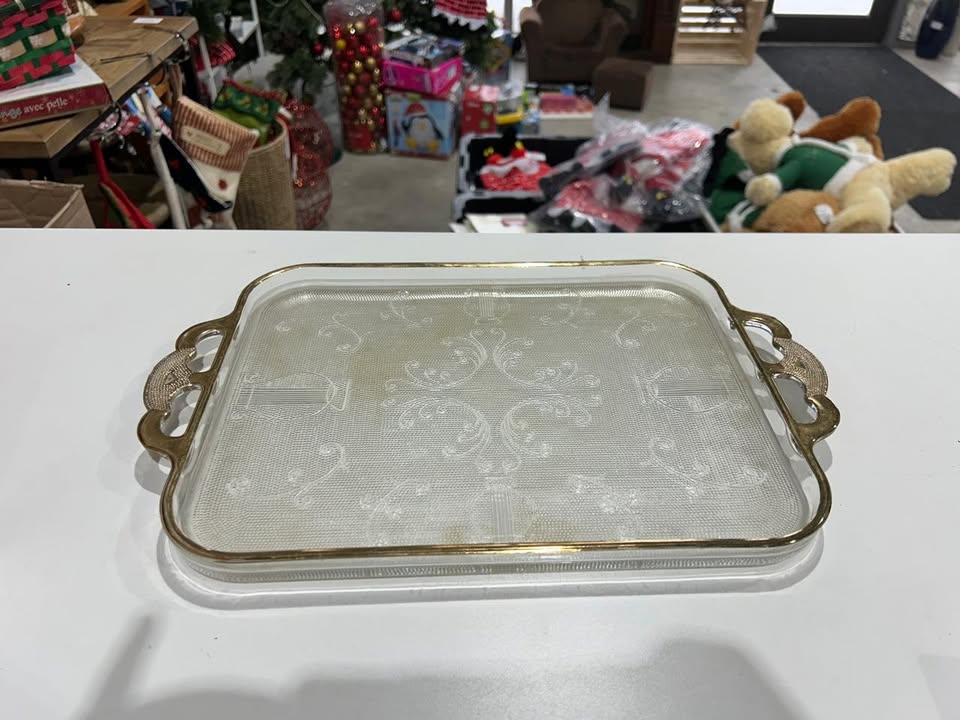 Vintage Jeanette Glass Harp Lyre - Serving Tray - Gols Guilding