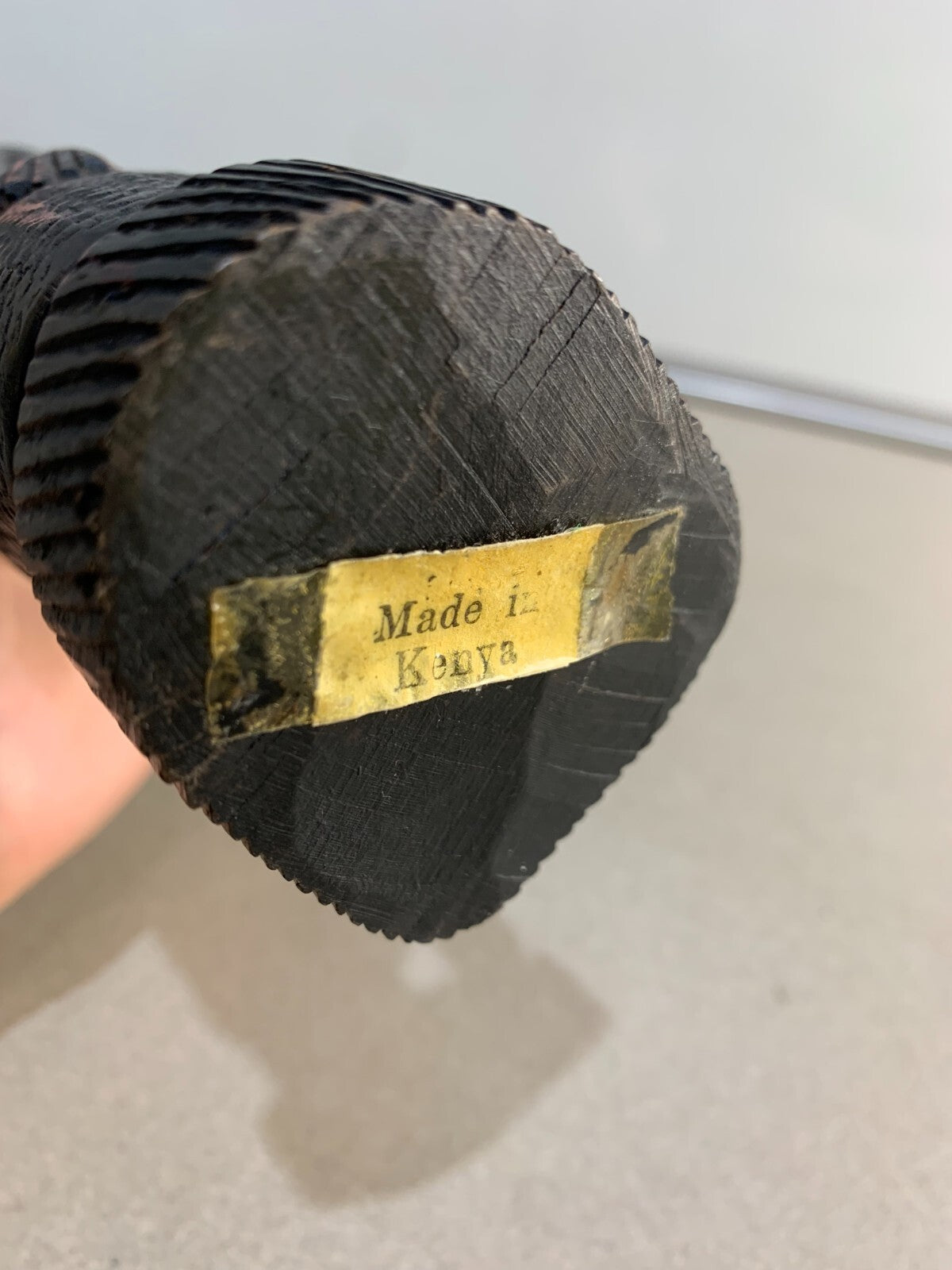 Experience the rich cultural heritage of Africa with this vintage Kenyan hand-carved sculpture. Depicting a kneeling African tribal woman, this piece showcases the intricate artistry and spiritual significance that is deeply rooted in African tradition. Each detail of the sculpture is thoughtfully crafted, revealing the artist's dedication to preserving traditional techniques and narratives. Ideal for collectors and enthusiasts of African art, this sculpture serves as a stunning focal point in any space. Its timeless design and handcrafted quality make it a unique addition to your collection or as a thoughtful gift that embodies the beauty and history of African culture.