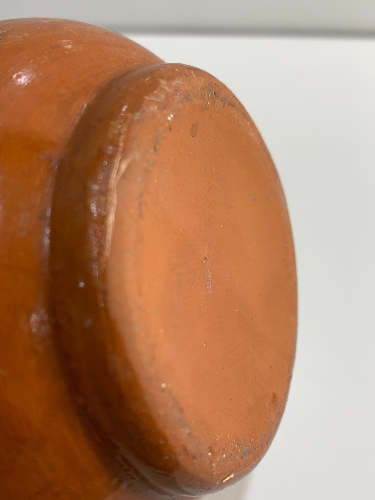 This vintage terracotta bud vase is a stunning piece of Mexican folklore art. The hand-painted details depict a Mexican storyteller, adding a unique touch to any space. The rich terracotta color provides a warm and inviting feel, perfect for any room in your home. This one-of-a-kind piece is a must-have for any collector or lover of Mexican culture.