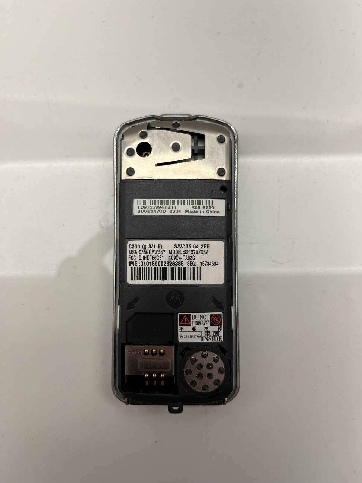 This vintage C333 cell phone from Motorola in silver is great for retro electronics collectors.