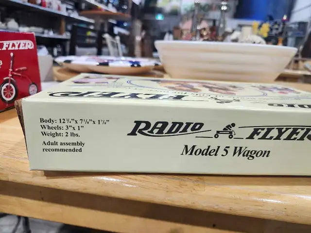 I'm selling a Radio Flyer Model 5 Wagon. This nostalgic piece features a real steel body, working steering, and is perfect for ages 2 and up, according to the box. Meant for dolls! Not an actual wagon.