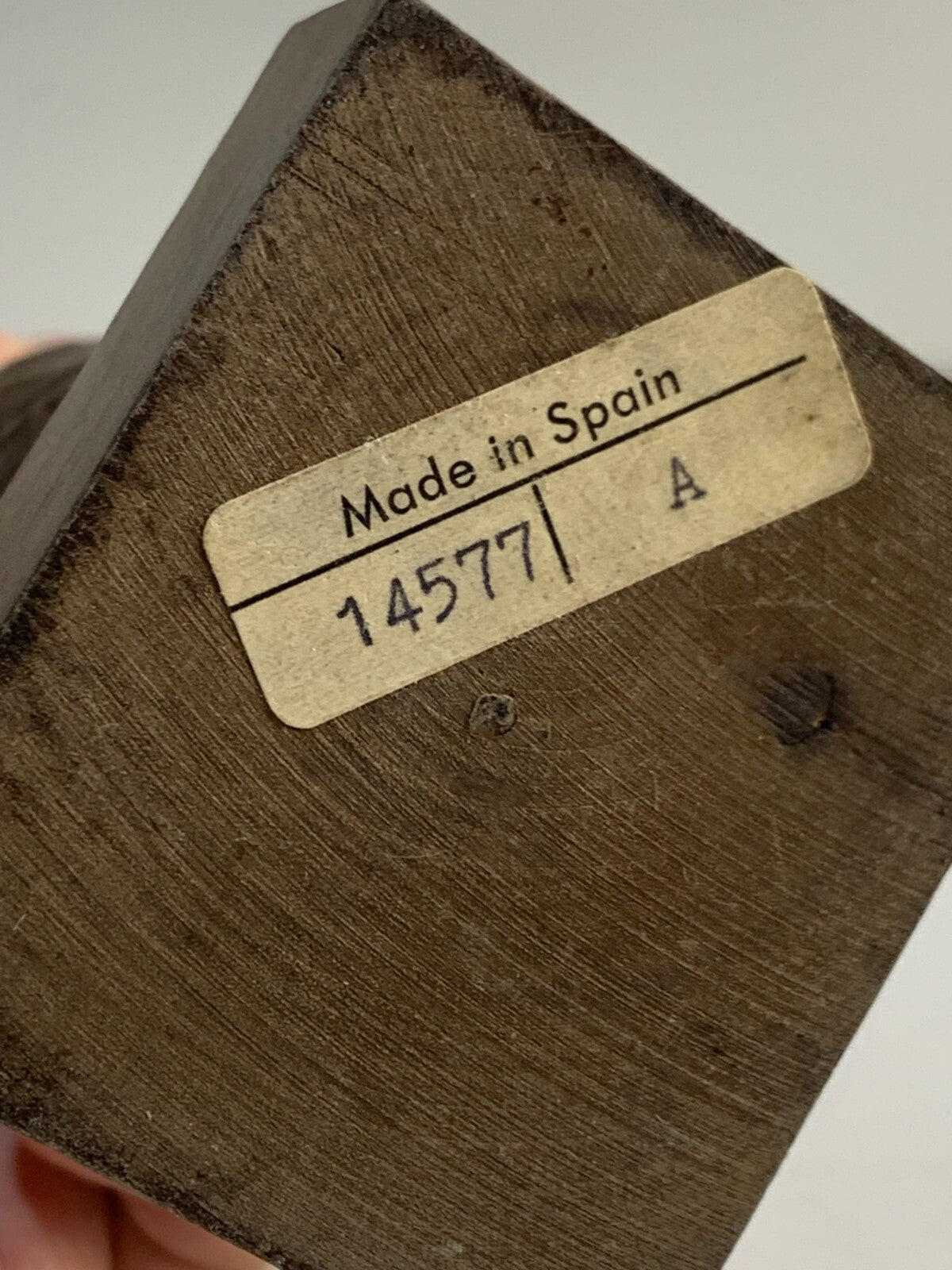 Discover the charming detail in this Vintage Ouro Arteania Carved Wood Sancho Panza Figure, a testament to the intricate artistry from Spain. Crafted with care, this piece showcases the timeless tale of the beloved sidekick from the classic novels, brought to life through the natural beauty of wood. Each curve and line in the carvings highlights the skill of the artisan, making this figure not just a decorative piece but a slice of literary history. Whether displayed as a standalone piece or as part of a collection, it adds a touch of sophistication and narrative to any space.