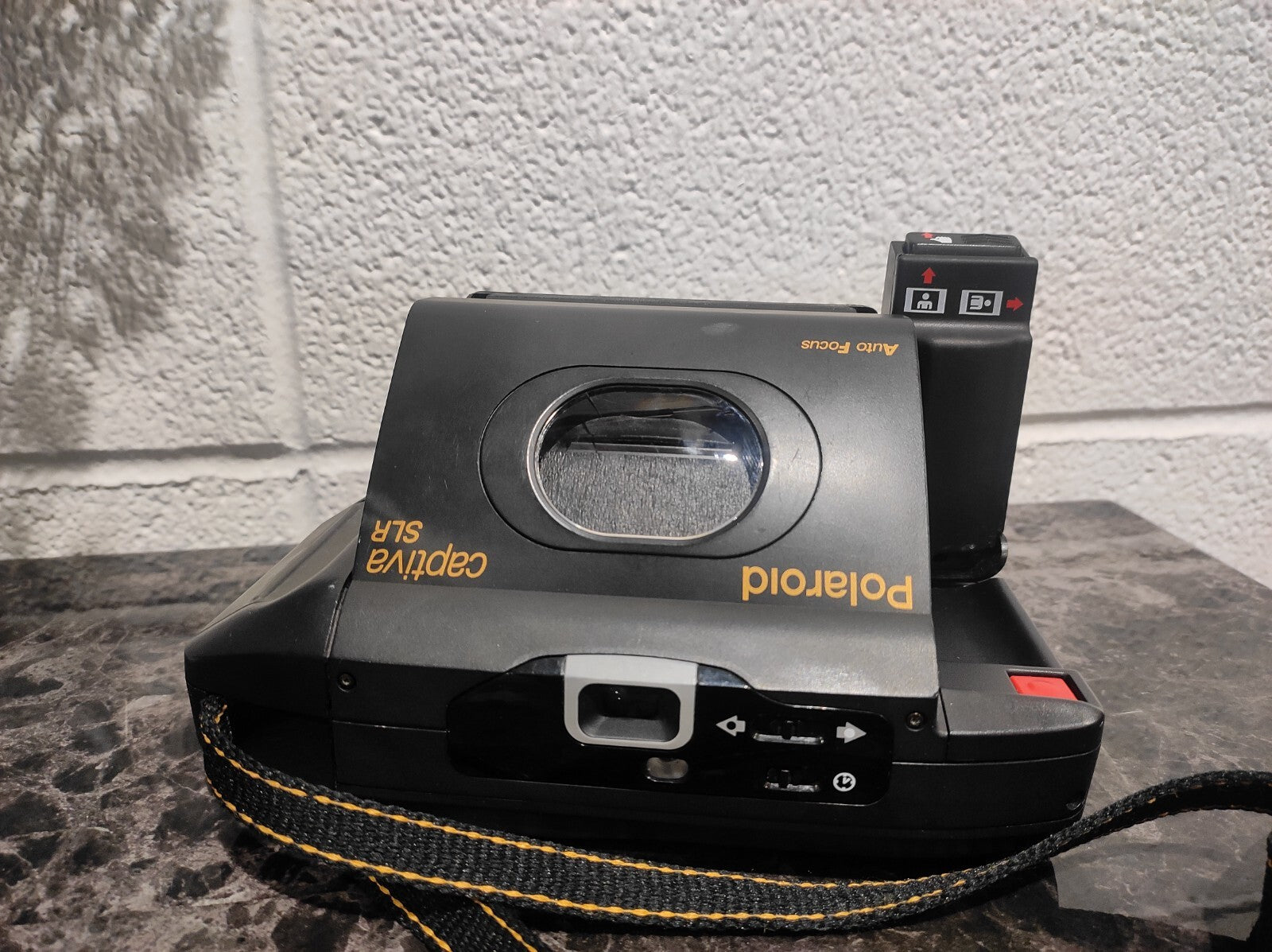 The vintage Polaroid Captiva SLR/QPS auto-focus camera (model F12-107MM) offers an advanced photography experience with its auto-focus system and SLR design. This camera combines retro appeal with functionality, making it a great addition for photography enthusiasts and collectors.