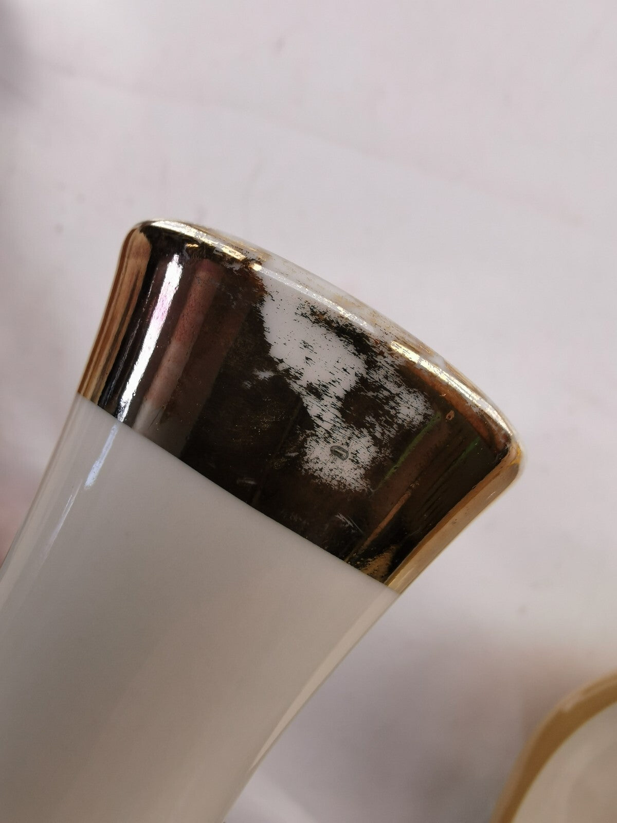 This vintage Royal porcelain vase is a beautiful addition to any collection. Made in Bavaria, Germany, this piece is crafted with the utmost care and attention to detail. The delicate floral design is sure to catch the eye of anyone who sees it. The vase is made from high-quality porcelain, ensuring its durability and longevity. It's perfect for displaying flowers or simply as a decorative piece. Whether you're a collector or just looking for a unique piece to add to your home, this vintage Royal porcelain vase is sure to impress.