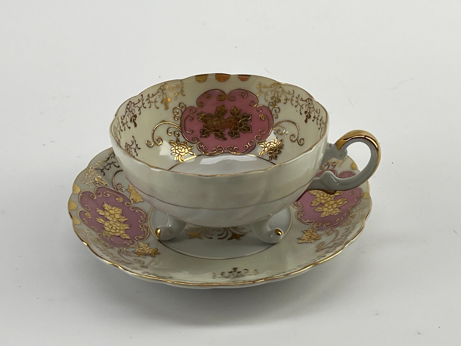 Vintage Shafford - Pink and Gold Floral - Three Footed Cup & Saucer - Teacup
