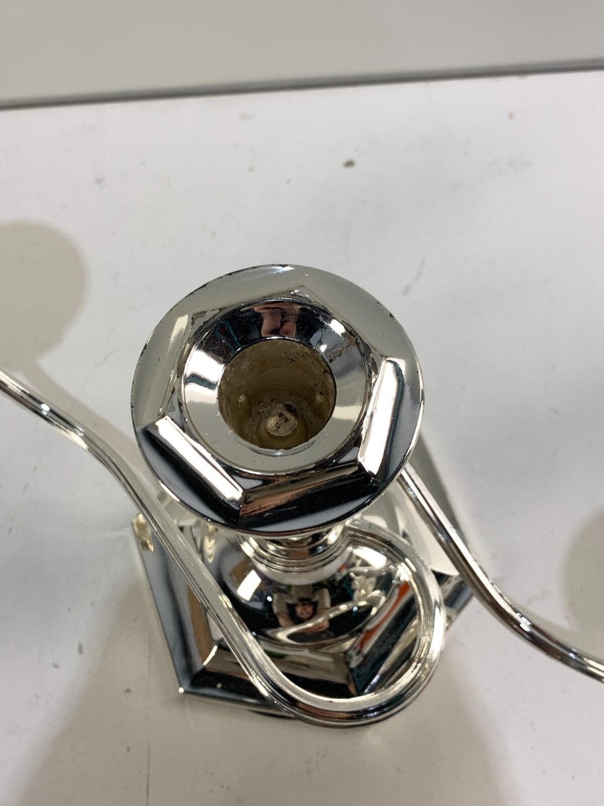 Vintage silver steel ornate candlestick holder 3 Arm Candle Holder