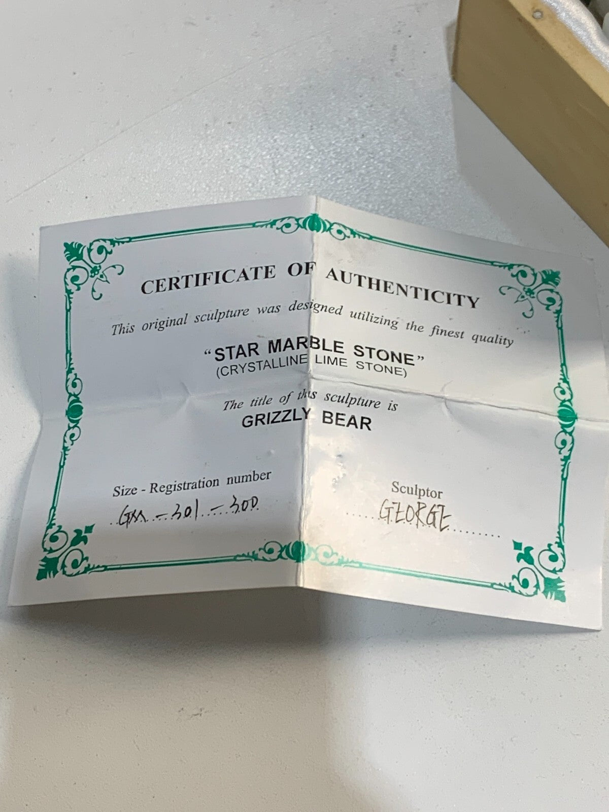 Vintage STAR MARBLE STONE Sculpture "Grizzly Bear" With COA