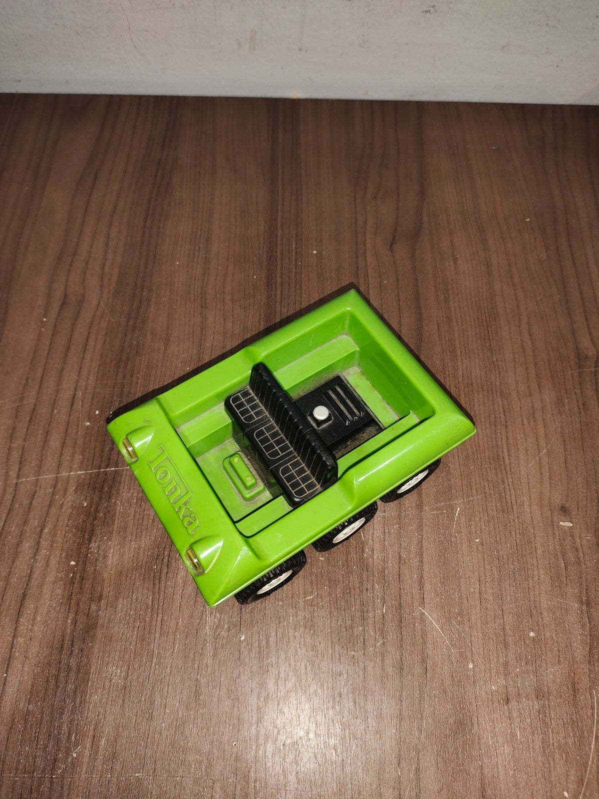 Bring home a piece of rugged Americana with this Vintage Tonka Military Dune Buggy , a solid die-cast metal collectible in classic military green. This 6-wheeled buggy showcases the iconic Tonka durability and craftsmanship that made it a staple in every kid's toy box during the golden age of metal toys.