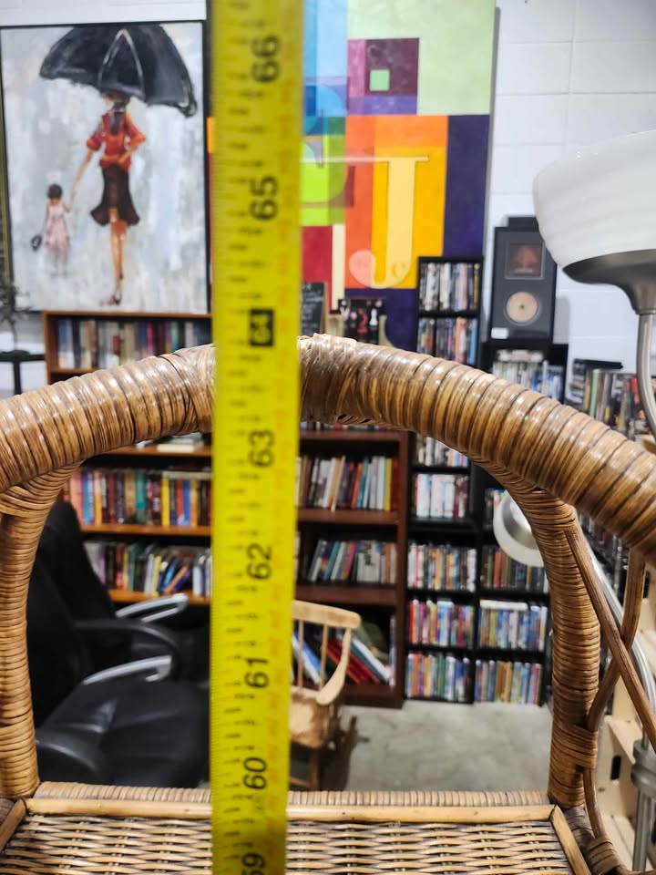Tall, narrow shelving unit. Five shelves. Arched top. Wicker construction. Brown colour. Visit our Thrift Store Rebound Centre Located at 6215 3rd St SE - Unit C 11 Open everyday 10am - 5pm local pick up/delivery available (for a fee).