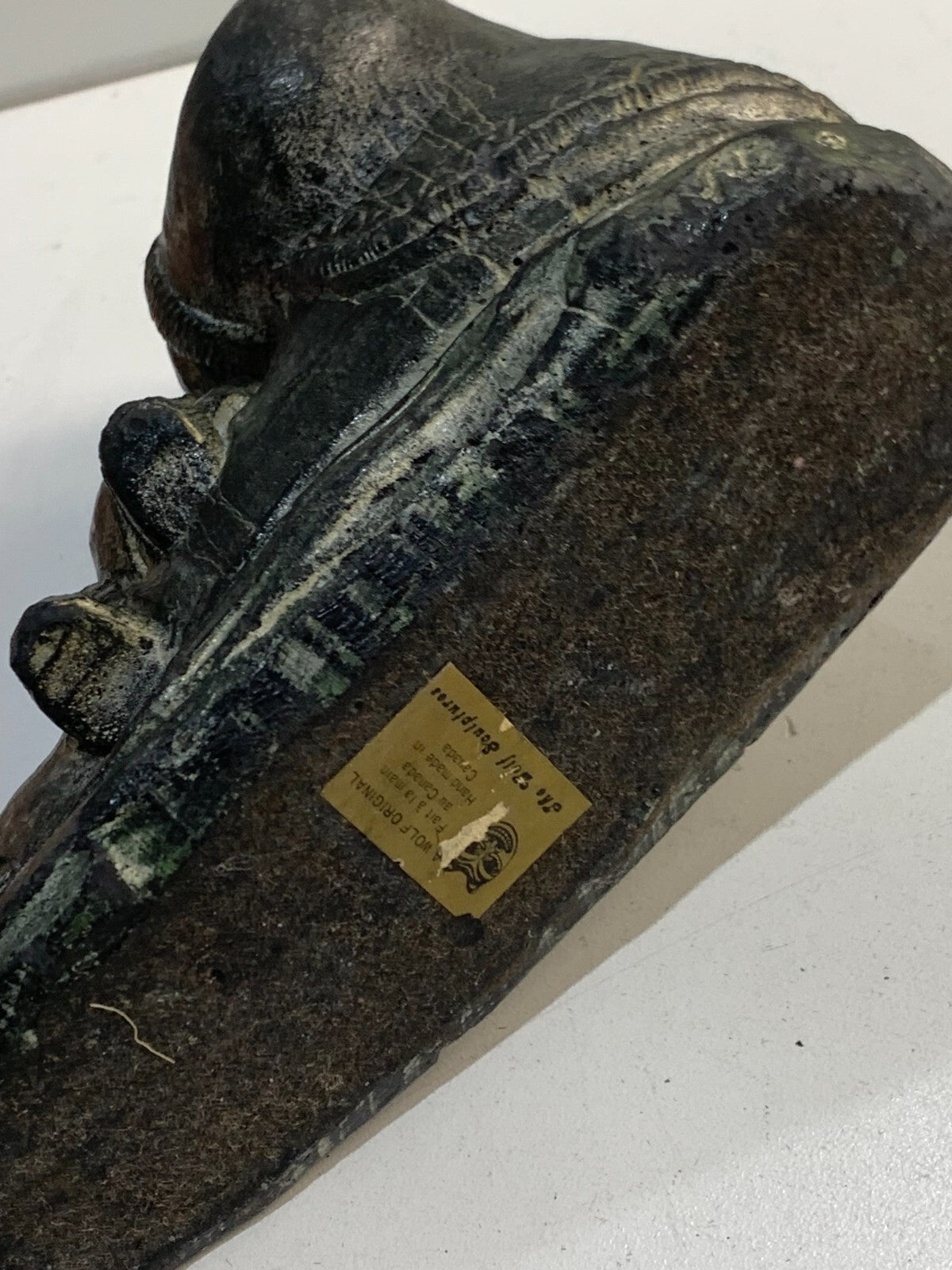 Experience the timeless artistry of the Canadian Aboriginal culture with this vintage WOLF Original Sculpture. Crafted from black soapstone, this piece captures the essence of Inuit tradition, depicting a tender moment between an Inuit mother and child. The sculpture reflects the rich heritage and naturalistic motifs characteristic of Inuit art, making it a meaningful addition to any collection or as a stand-alone focal point. Proudly originating from Canada, this artwork is not only a testament to the skilled craftsmanship of the Inuit people but also an emblem of Canadian heritage. It brings a touch of Arctic beauty and storytelling to any space, inviting contemplation and appreciation for the culture and its storied past.