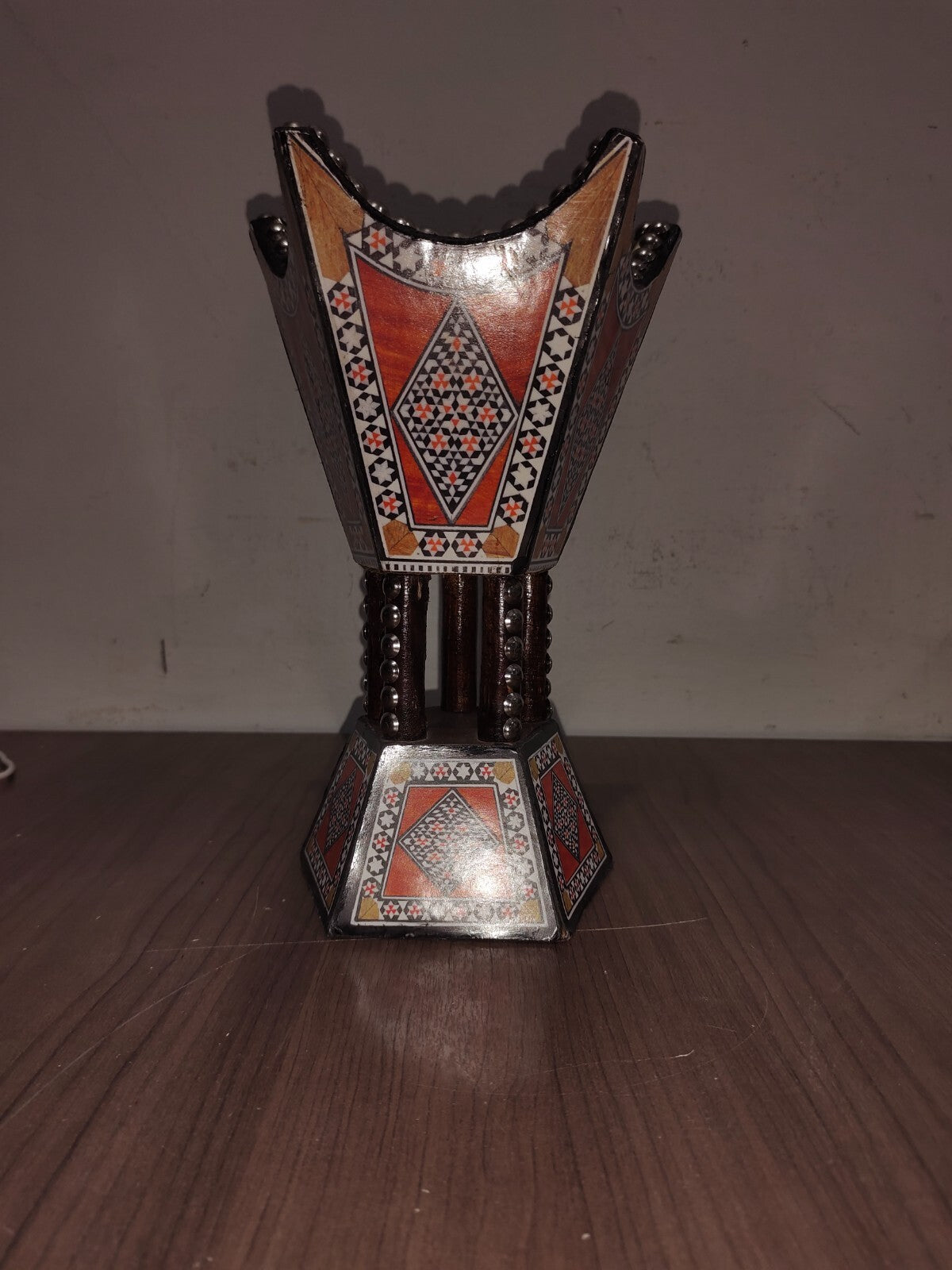 This Vintage Wooden Incense Holder is a charming antique piece that adds both functional use and aesthetic beauty to any space. Crafted from high-quality wood, it features intricate carvings or designs that showcase the artistry of the past. Typically designed to hold incense sticks or cones, this wooden incense holder is both a practical and decorative item, perfect for creating a serene and calming atmosphere in any room.