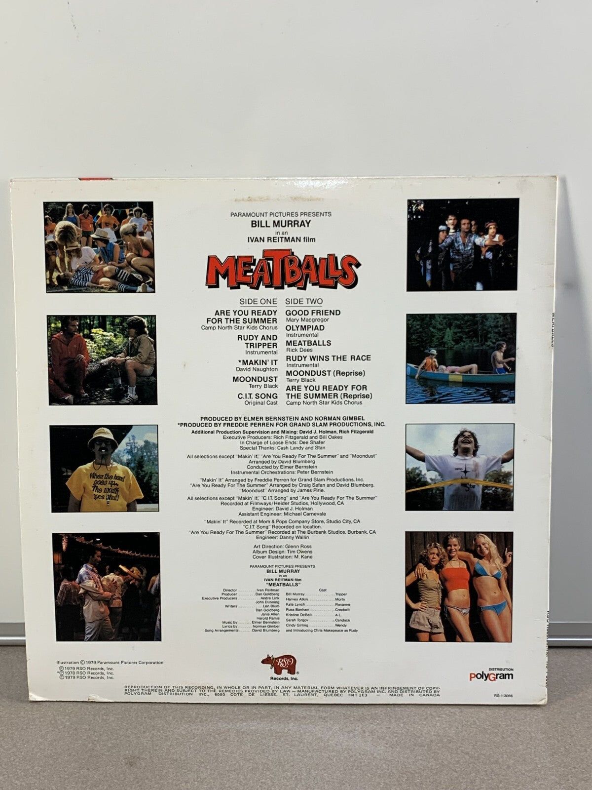 This product is a vintage 1979 LP vinyl record of the soundtrack for the movie "Meatballs." The album features various artists and is in a 12" black vinyl format. Perfect for collectors of music memorabilia, this nostalgic piece captures the essence of the iconic film with its classic tunes.